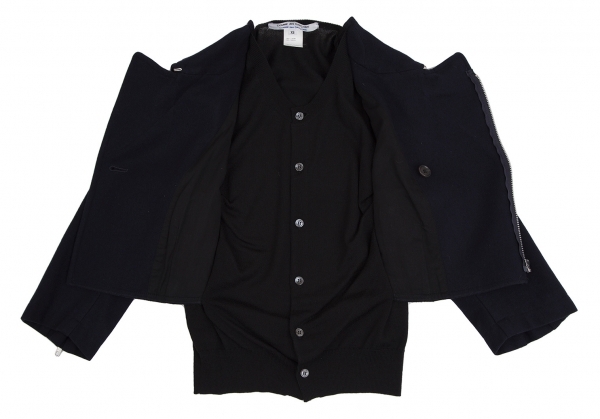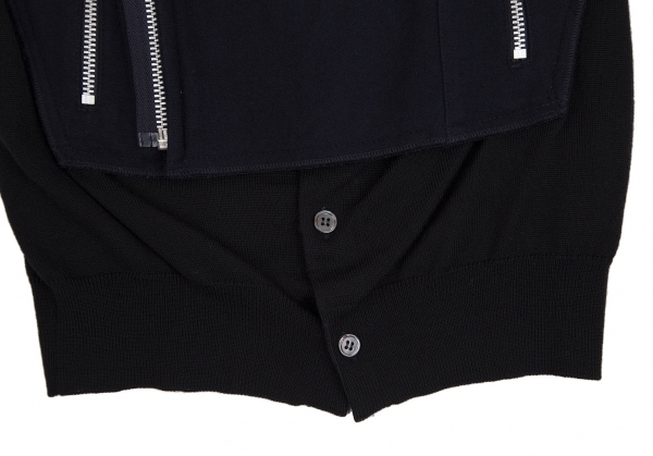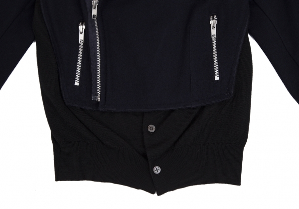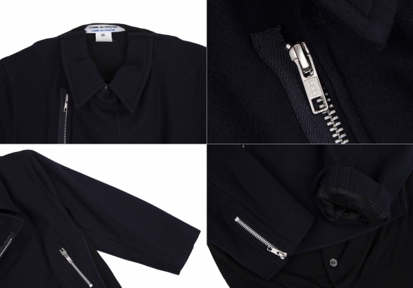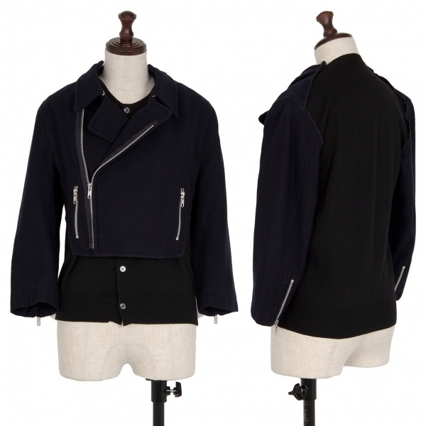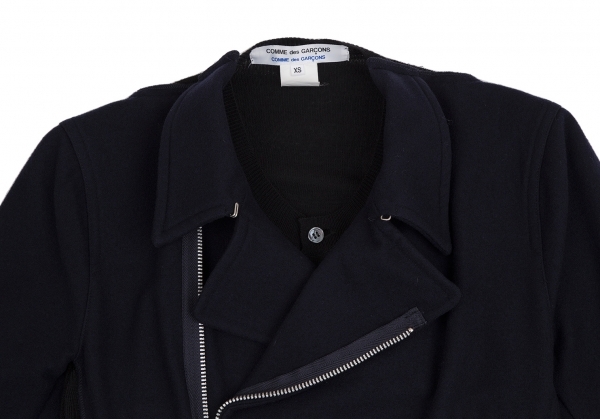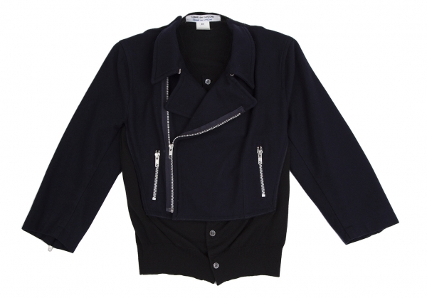コムコム コムデギャルソンCOMME des GARCONS カーディガンドッキングデザインウールライダースジャケット 紺黒XS |