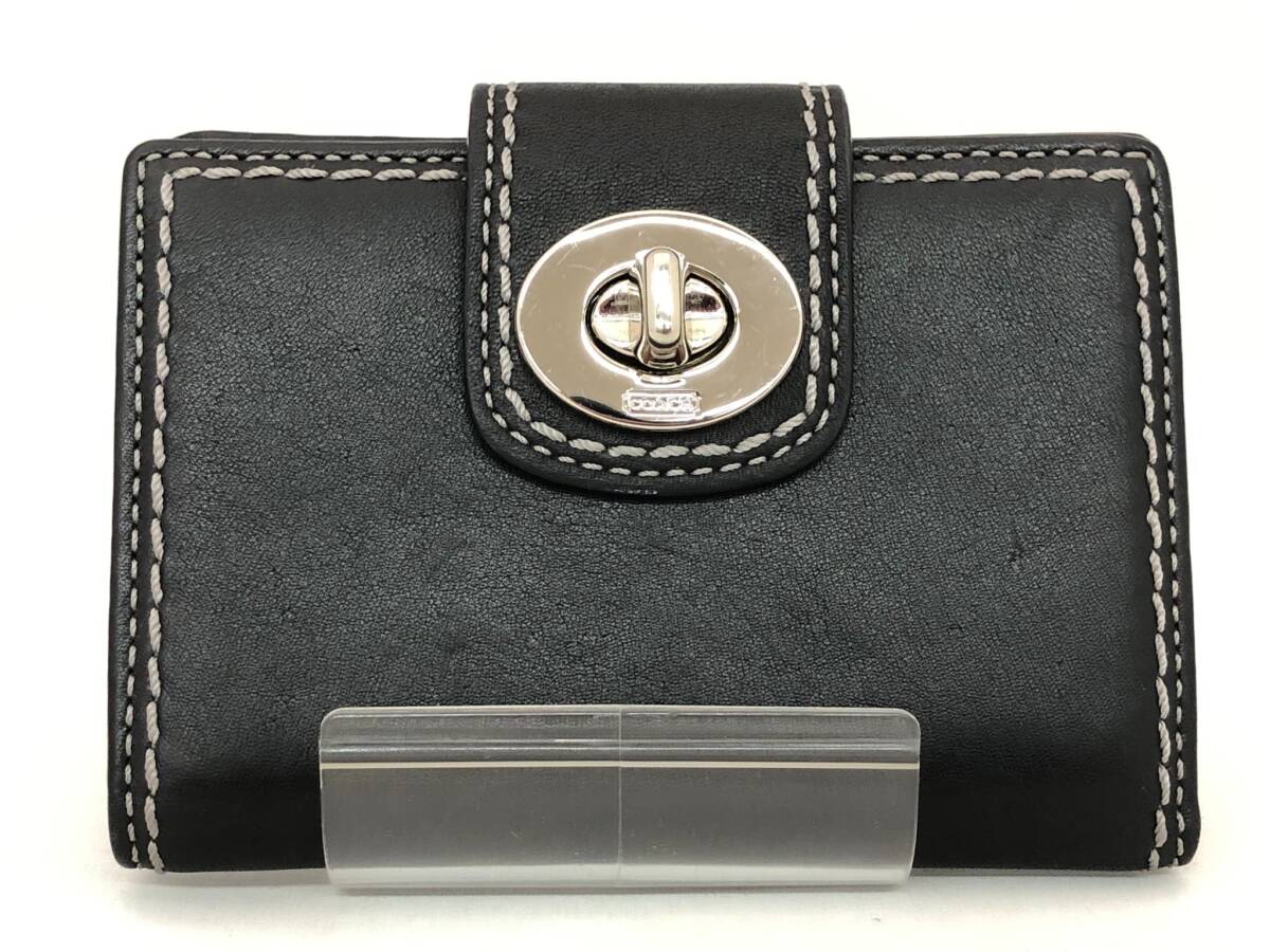 コーチ 二つ折り財布 レザー ブラック ターンロック /B8278F