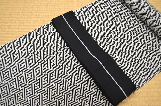 黒白地に、粋な紗綾型