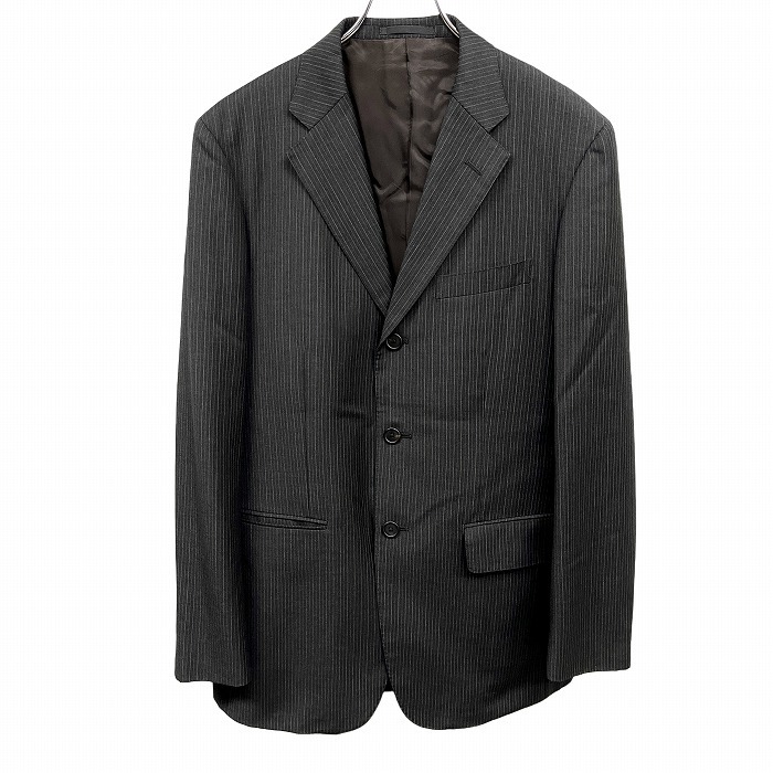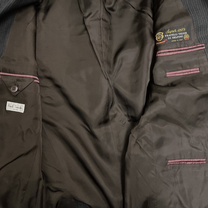 | 商品タイトル | ポールスミス テーラードジャケット ストライプ 総裏地 ウール100%(裏地:キュプラ) XL LL チャコールグレー グレー×白系×茶 メンズ |