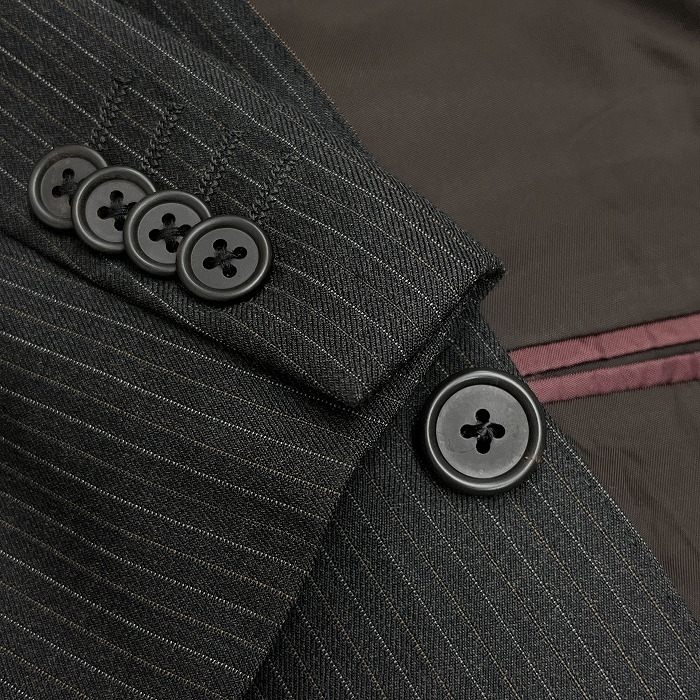 | 商品状態・ディテールなど | (※実測寸法など、多少の誤差はご容赦下さい。) (※商品は衣類の場合は全て畳んで保管しており、服飾雑貨も靴以外は必要に応じ畳んで保管しております。保管や梱包による畳み皺などはご了承下さい。) ●気になったダメージの場所と種類: ・所々:- ・全体:- ・肩:- ・襟:- ・胸:- ・腹部:- ・裾:- ・右袖:- ・左袖:- ・袖口:- ・背中(上):- ・背中(下):- ・内側:- ●その他ディテール:薄手の肩パッド入り、3つボタン留め、サイドベンツ、内ポケット×4 ●付属品など:- ●その他:日本製 |