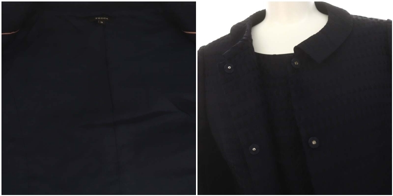 【状態】この商品には下記のようなダメージがあります。 【ジャケット】 〈前〉 ・左袖にほつれ ・左裾上にほつれ 〈後〉 ・左袖にほつれ ・左裾上にほつれ 【ワンピース】 ・両脇にシミ 〈前〉 ・切り替え右下付近にほつれ ・裾の広範囲に複数のほつれ 〈後〉 ・右脇後付近に複数のほつれ ・裾広範囲に複数のほつれ ※全体的に中古品としての使用感と上記のようなダメージがありますが、通常使用には支障のない商品です。掲載写真や記載内容をご確認いただき、ご理解の上ご購入ください。