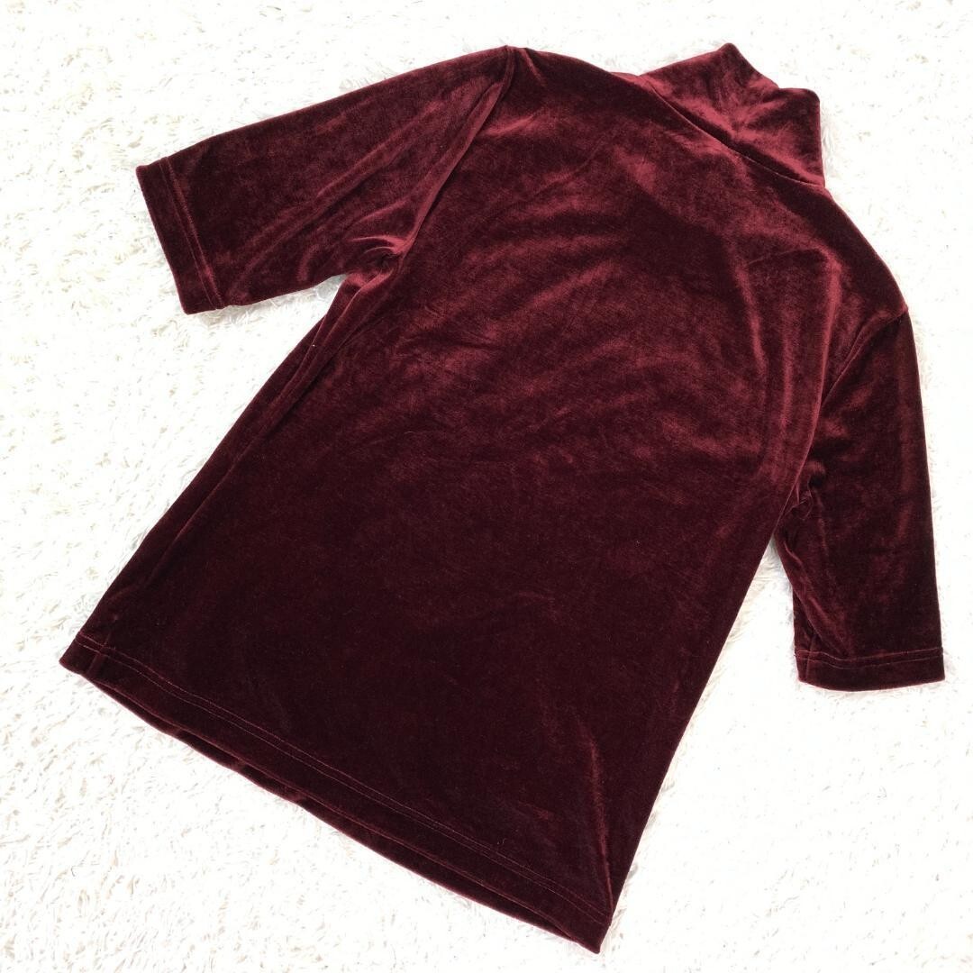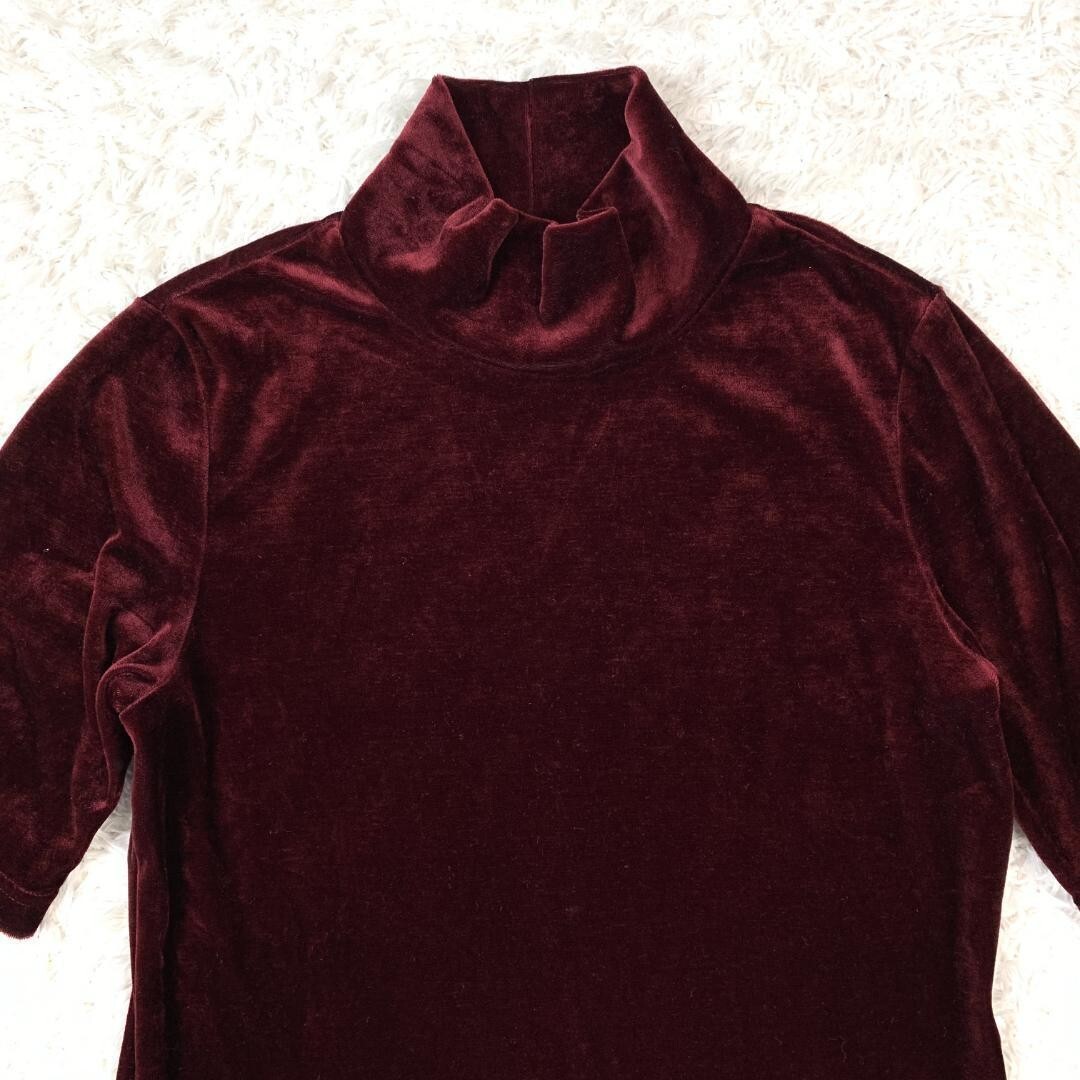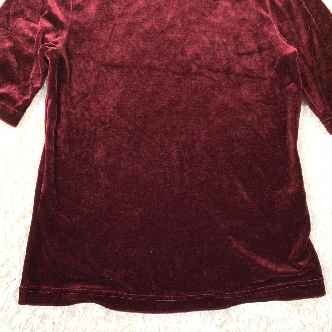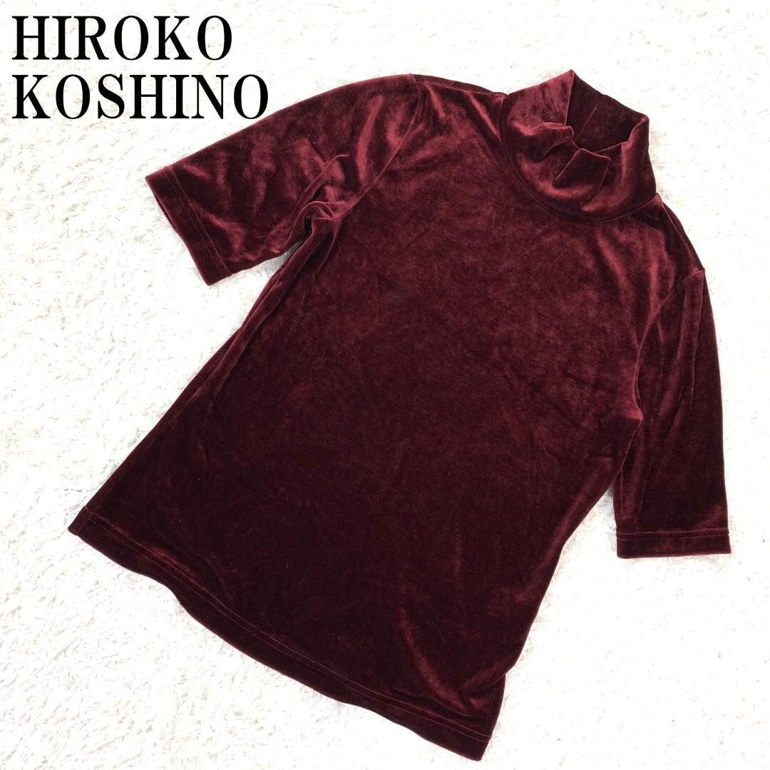 HIROKO KOSHINO ベロアカットソー ヒロココシノ ハイネックカットソー 赤 ポリエステル トリアセテートワインレッド 38 B9831