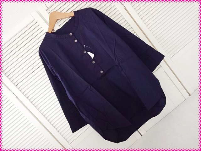 【送料無料】3L* 新品 スタンドカラー 綿混ストレッチ シャツチュニック♪ ネイビー 7分袖