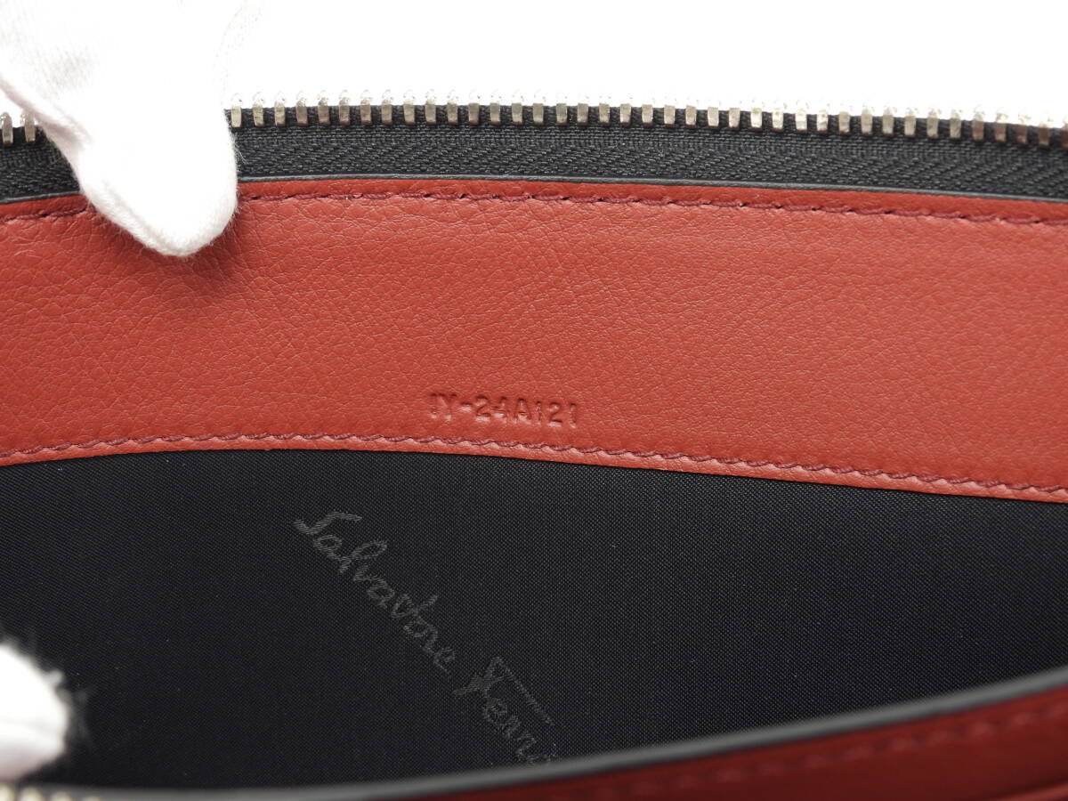 サルヴァトーレフェラガモ クラッチバッグ ドットロゴ レザー黒 ポーチ 新品@IY24A121 2