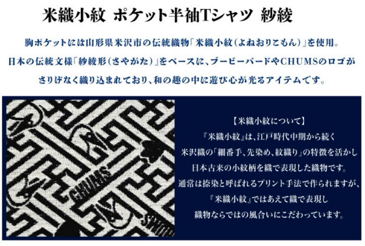 日本の伝統文様「紗綾形(さやがた)」をベースに、ブービーバードやCHUMSのロゴがさりげなく織り込まれており、 和の趣の中に遊びゴコロが光るアイテムです。