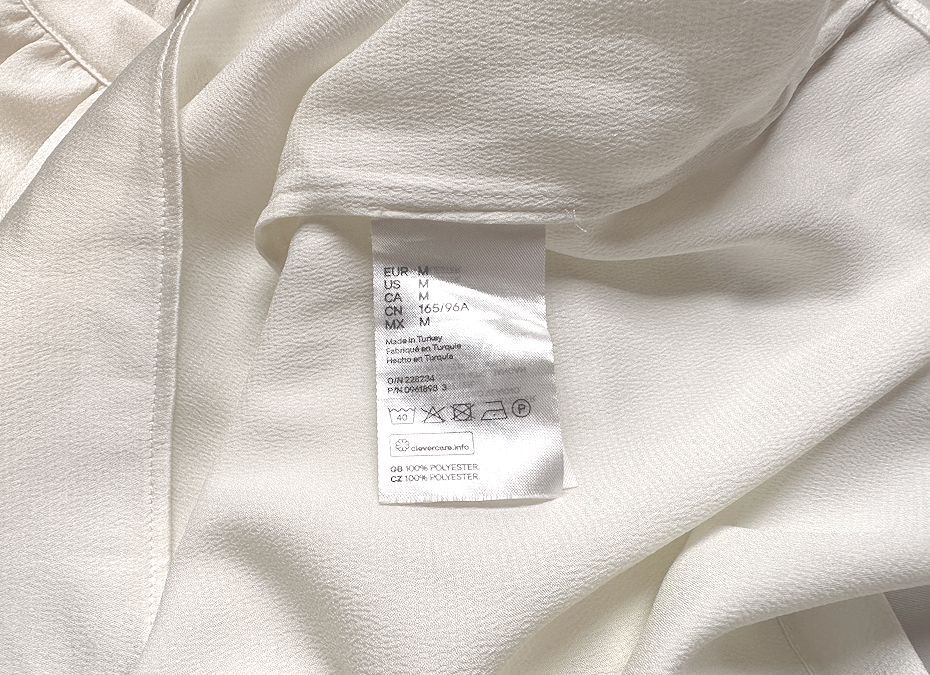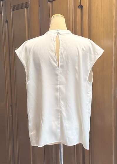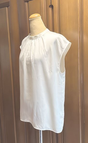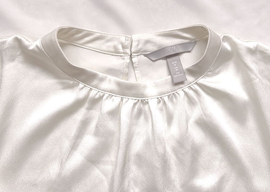 値下★H&M エイチアンドエム★バンドカラー・ギャザー・シルキーサテン・クレープ・ブラウス・ホワイト・ゆったりM★美品