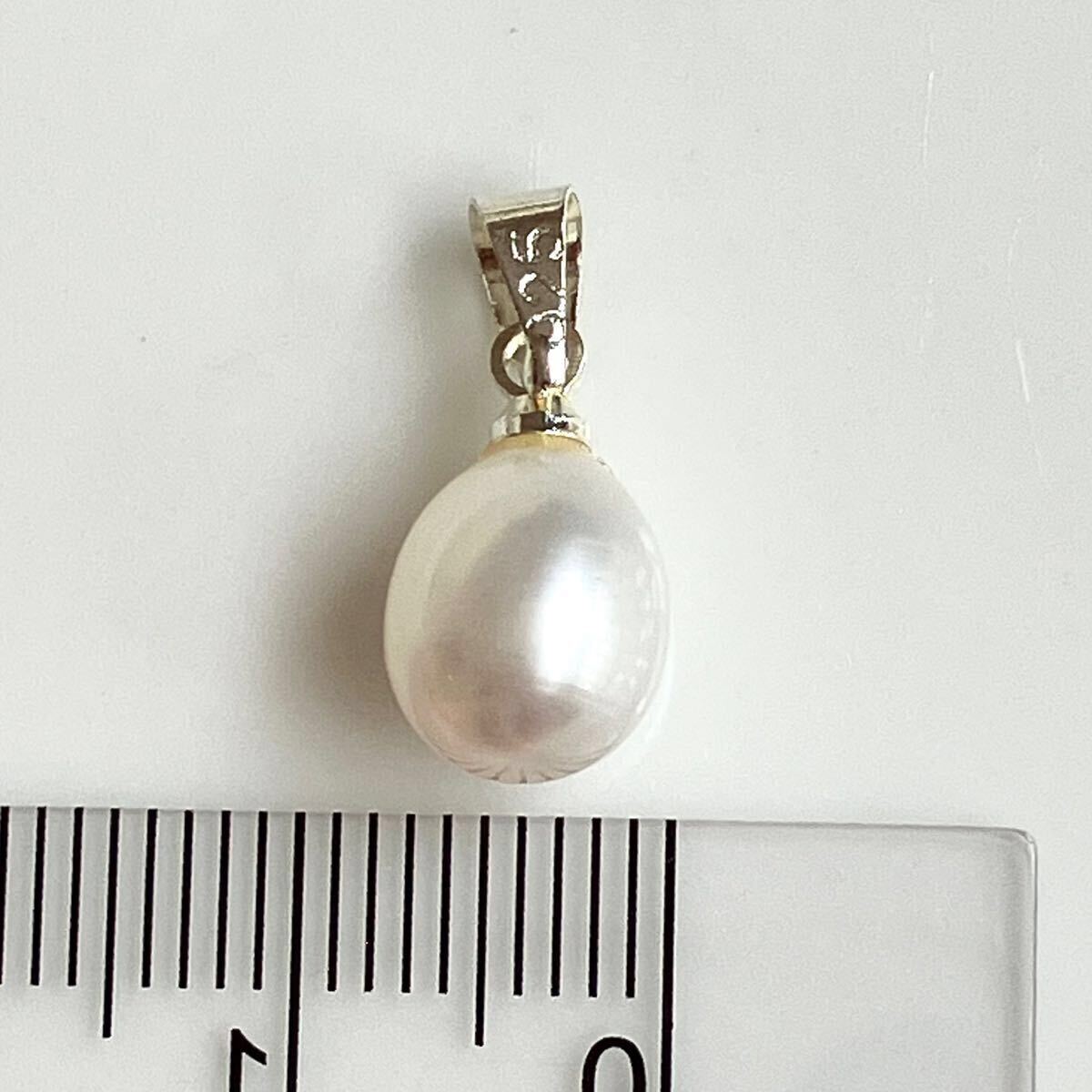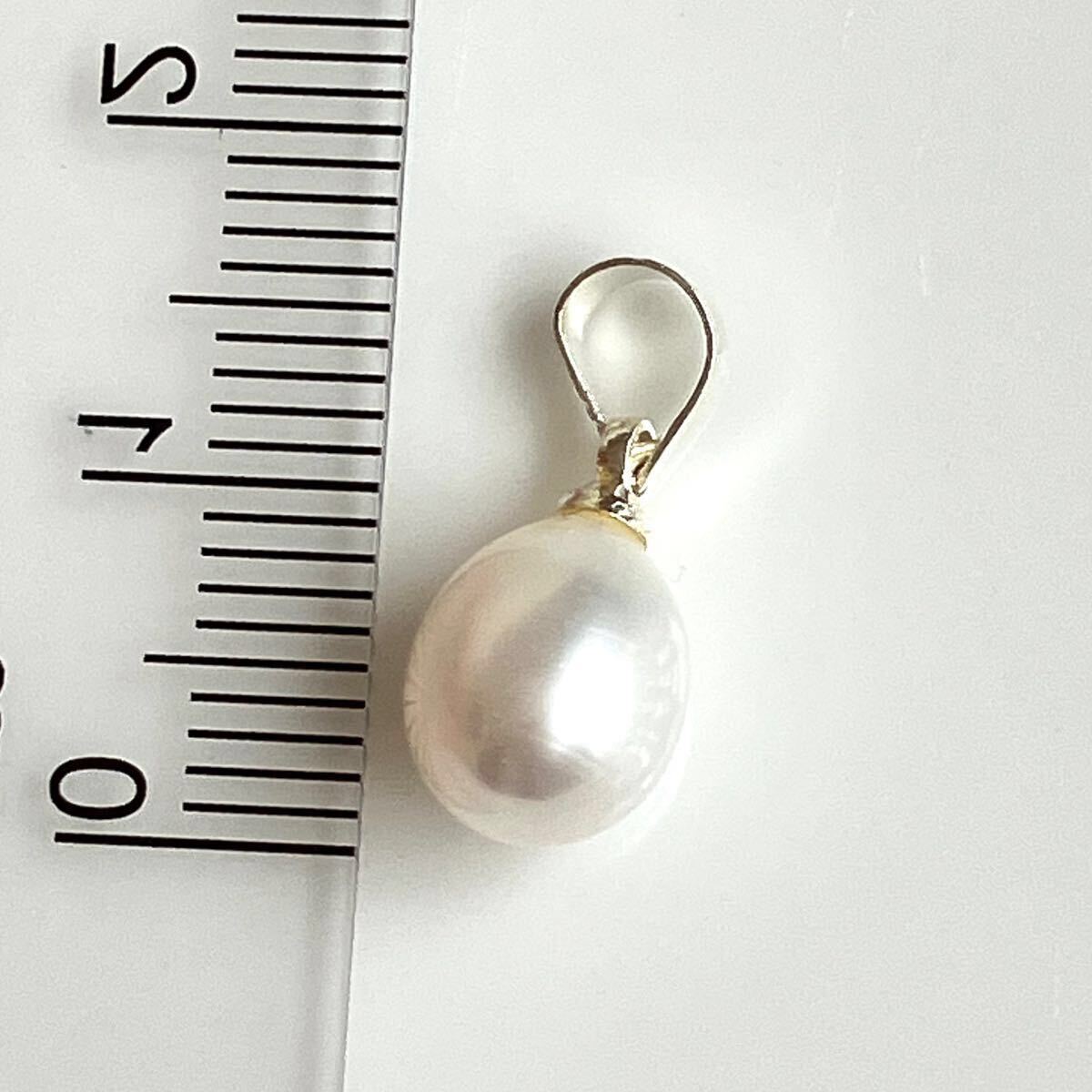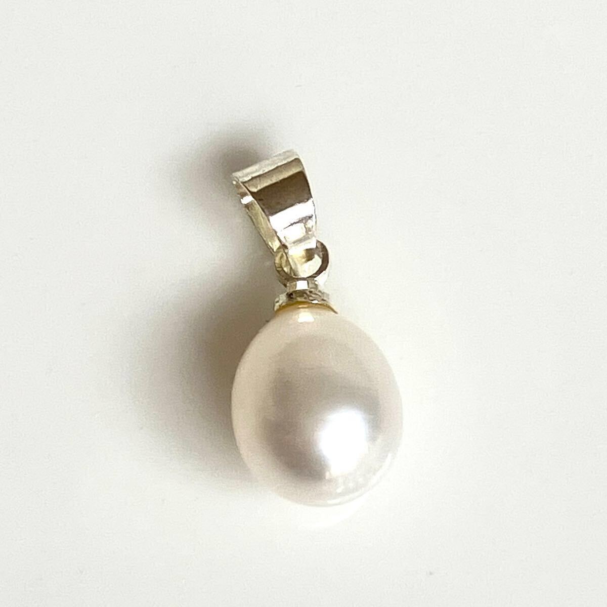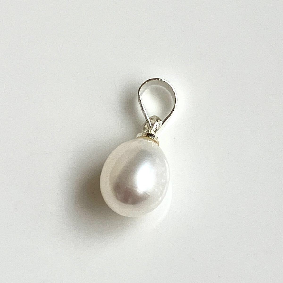 程よいサイズの淡水パールペンダントトップです。パールの優しい艶と淡い色合いが、女性らしい魅力を引き立ててくれます。お手持ちのネックレスチェーンと合わせてお使い下さい。