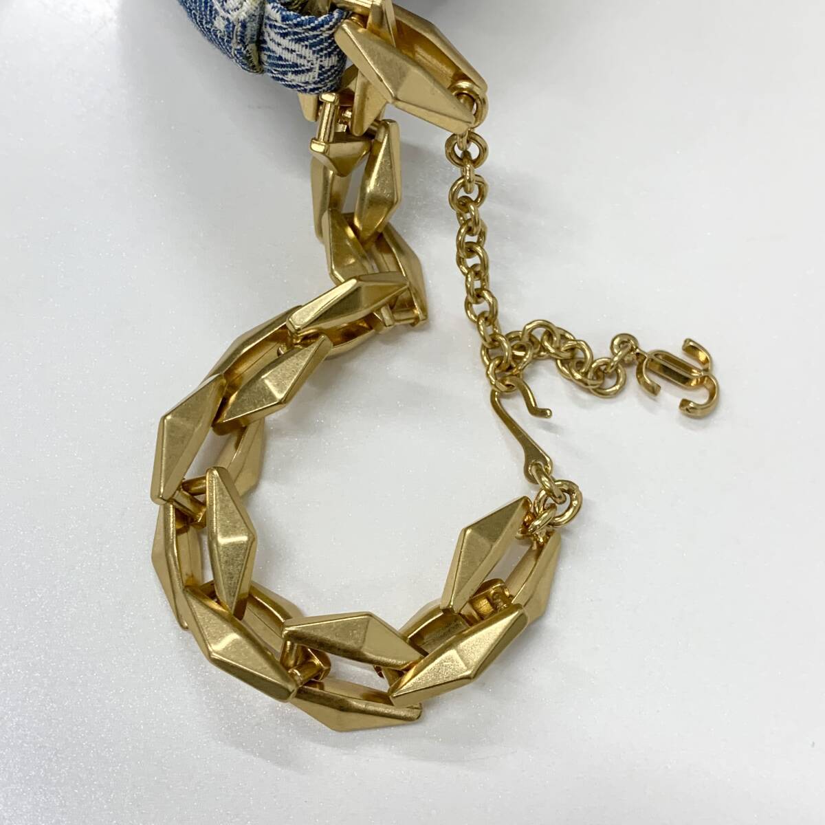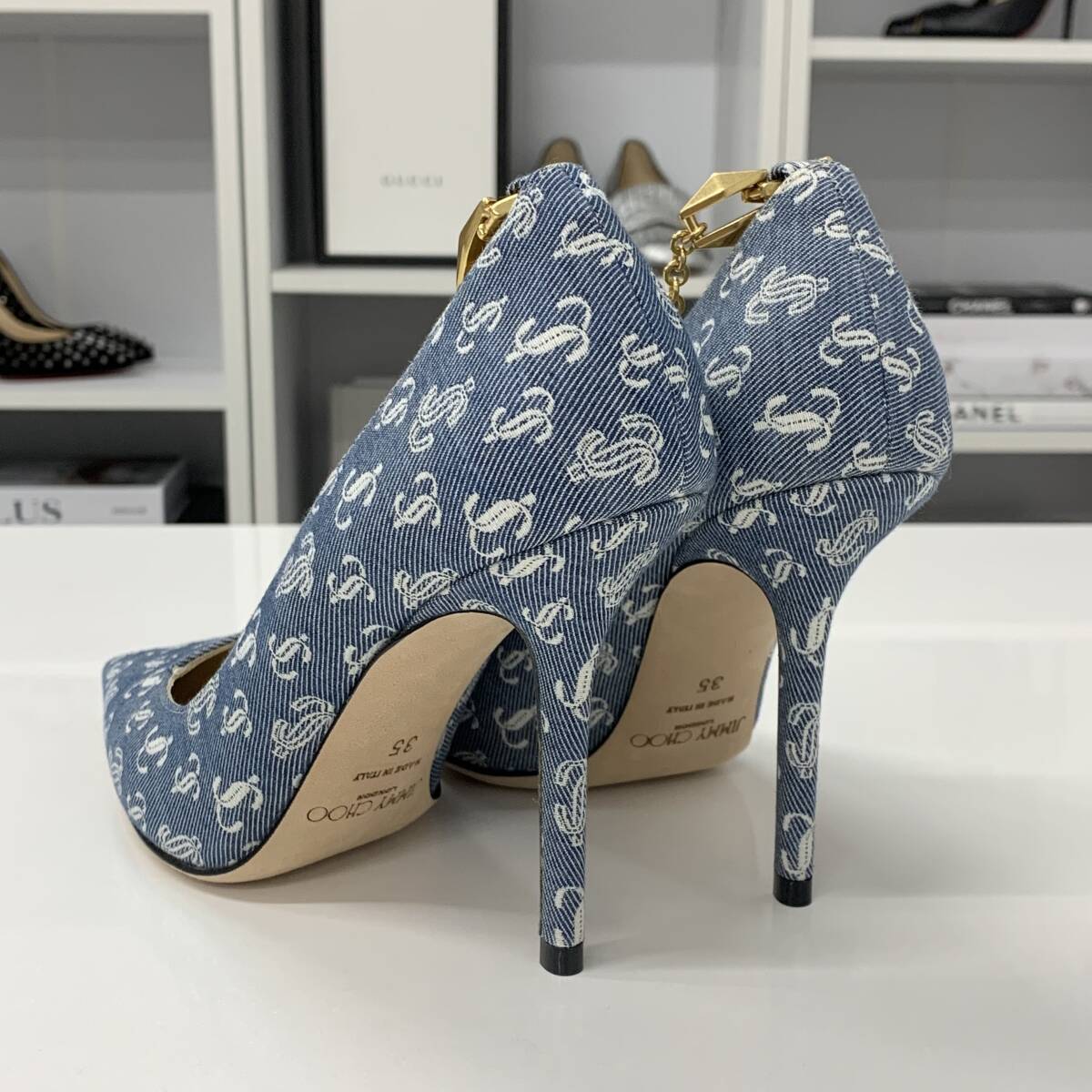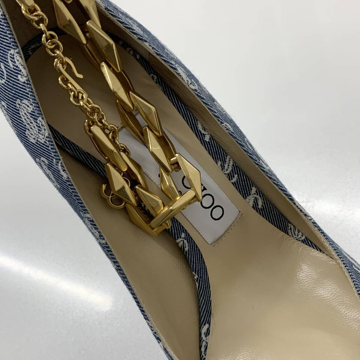 M11974 未使用 ジミーチュウ DIAMOND TALURA デニム ロゴ チェーン パンプス ブルー