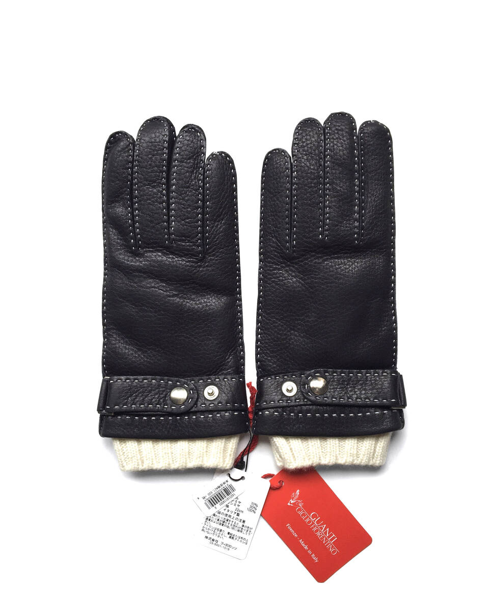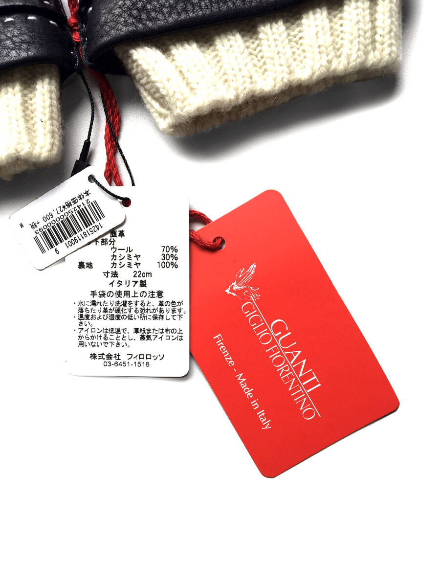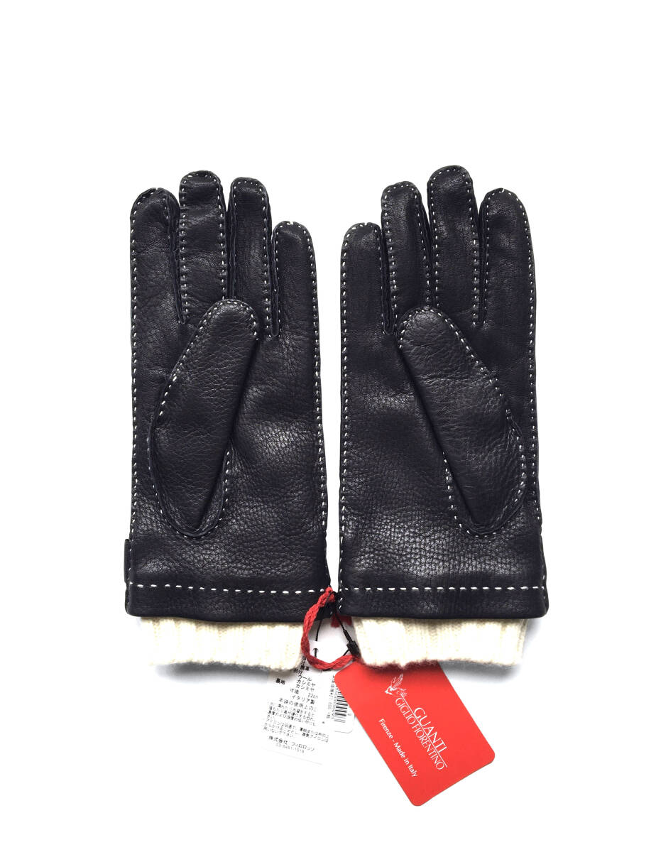 新品 GUANTI GIGLIO FIORENTINO 7.5 グアンティジリオフィオレンティーノ グローブ 手袋 ディアスキン 鹿革 ネイビー カシミヤ 定価3万