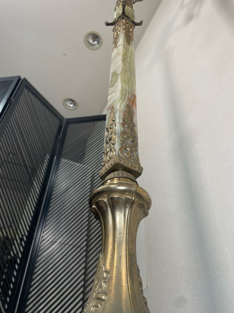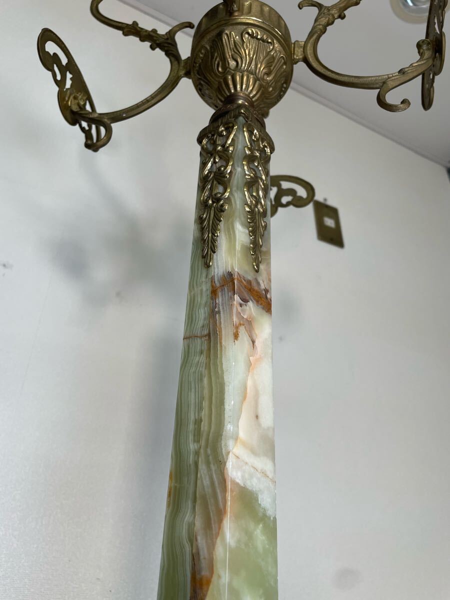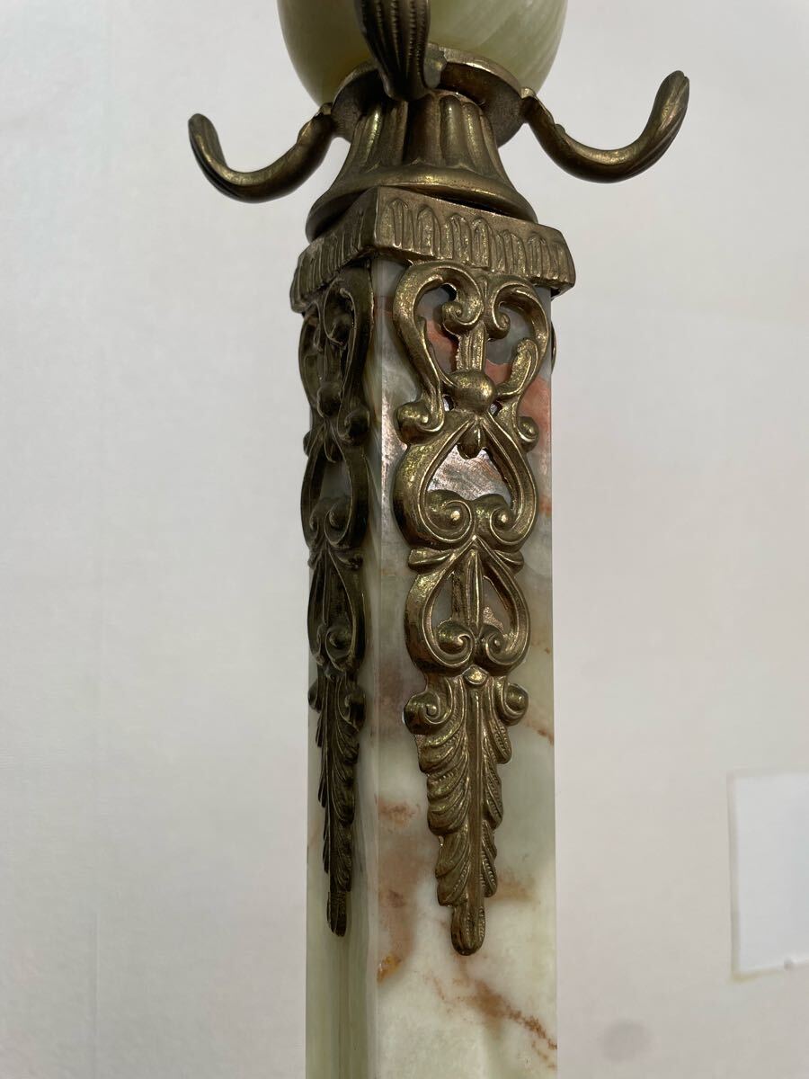 四角い面にカットされた大理石は一点もののマーブル模様が美しく、またゴールドの装飾と相まって極めてエレガントな印象。