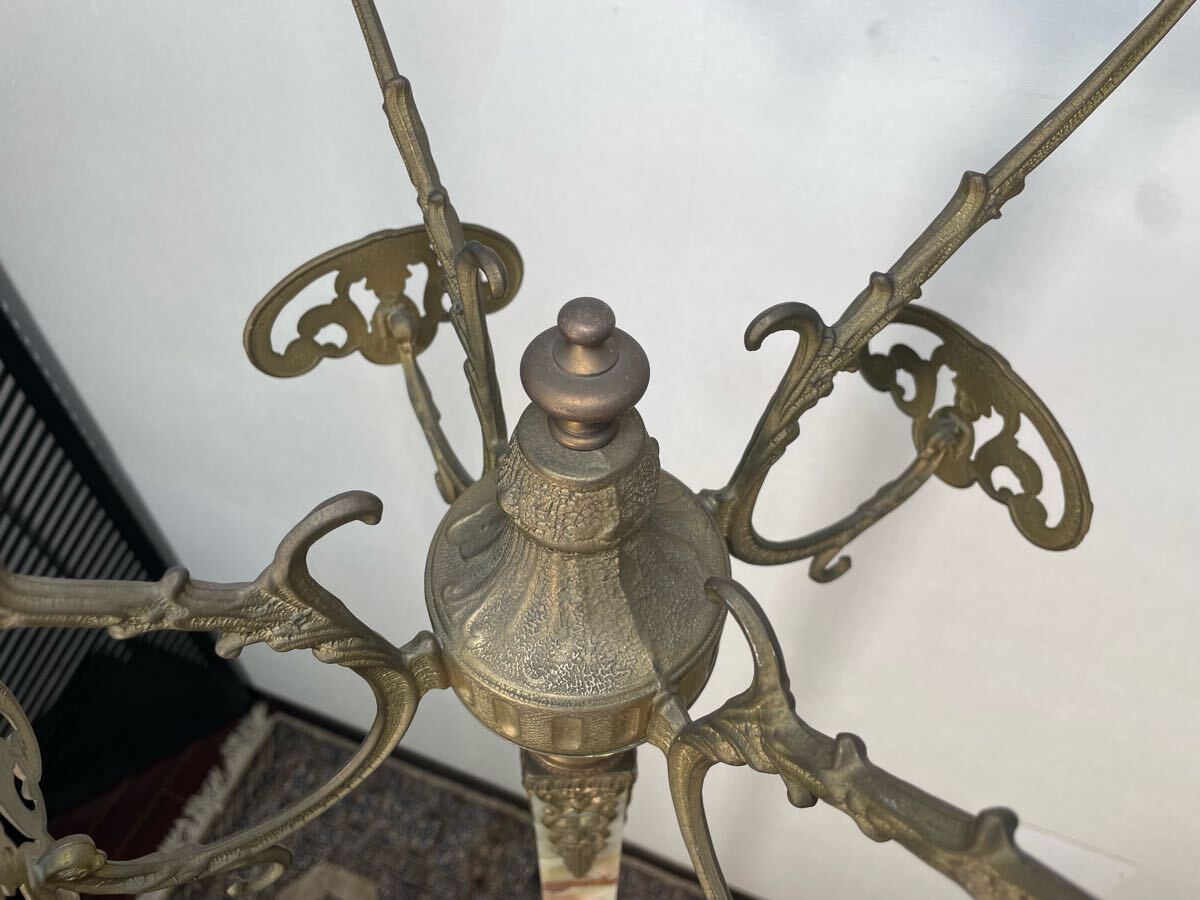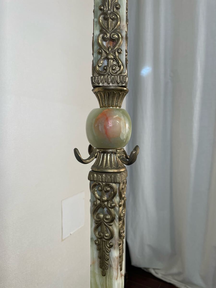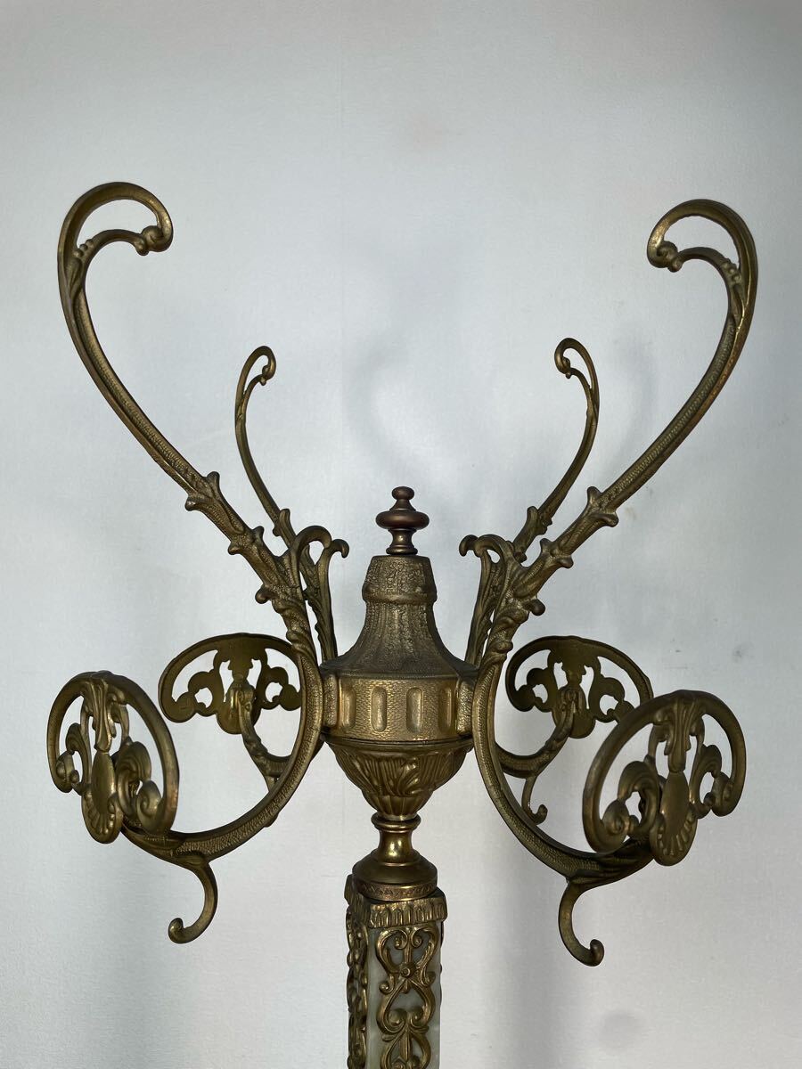 四角い面にカットされた大理石は一点もののマーブル模様が美しく、またゴールドの装飾と相まって極めてエレガントな印象。
