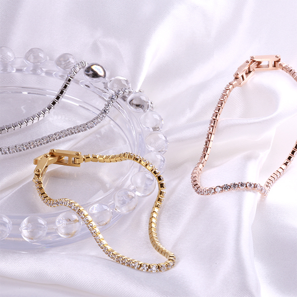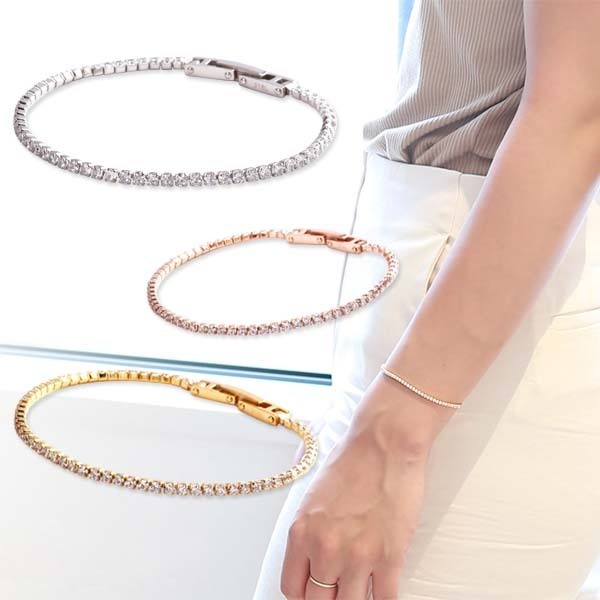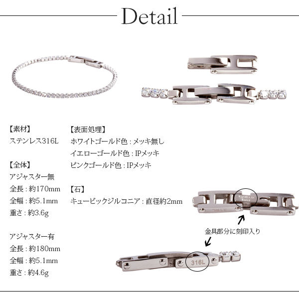 【jf】◆金属アレルギー対応素材 ブレスレット キュービック テニスブレス サージカル ステンレス316L ホワイトゴールド色◆≪郵送無料!≫