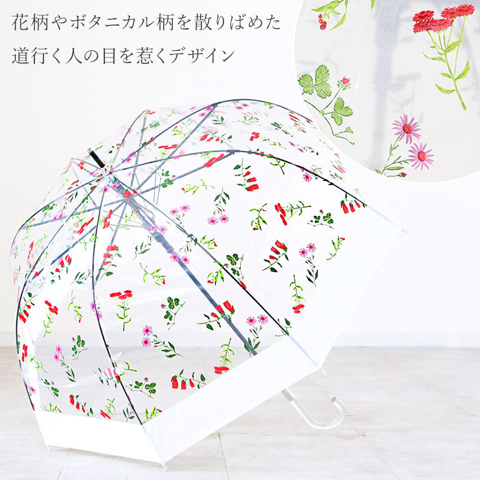 | 商品説明 | ・・小鳥を包み込む鳥かごのように、優しく雨から守ってくれる・・・。amusant sous la pluie(アミュゾン・スー・ラ・プルイ)から、バードケージ・プラスティックアンブレラが新登場。(親骨65cmタイプ) ・通常の長傘よりも傘生地を深く張り、ふんわりと丸みのあるドーム型に仕上げた個性的なフォルムが特徴。 ・ポリエチレン製の透明な生地に、ヴィヴィッドな花柄やボタニカル柄を散りばめた道行く人の目を惹くアーティスティックなデザインが魅力。(※切り継ぎWH・切り継ぎSKYの2色は、クリアタイプの傘生地になります。) ・少し大きめに傘生地が広がる親骨65cmタイプなので、洋服や荷物が雨に濡れにくく、しっかりとさせるのが嬉しいポイント! ・親骨には、軽量で強い風の日もしなやかにさせるグラスファイバー素材を採用。スリムに折りたためて、持ち運びも楽ちん。 ・片手に荷物がある時や、突然の雨でもワンタッチで傘生地がサッと広げられるジャンプ式。 ・つゆ先近くを縁取る淡いカラーと透明なアクリルハンドルが、洗練された大人の女性の装いに素敵にマッチ。 |