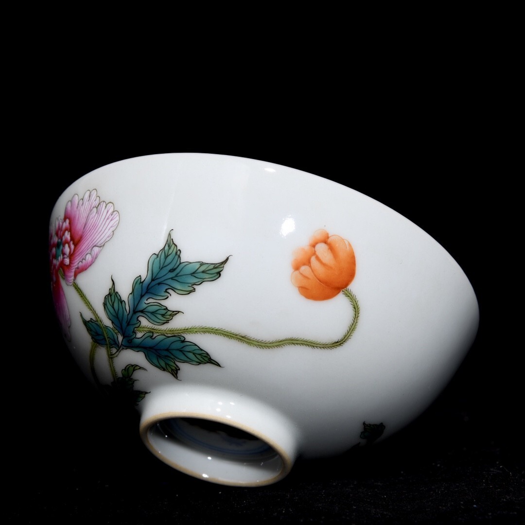 【瓏】陶磁器 粉彩虞美人花卉紋杯一対 大清雍正年製 染付 置物擺件 古賞物 古美術 陶芸 蔵出