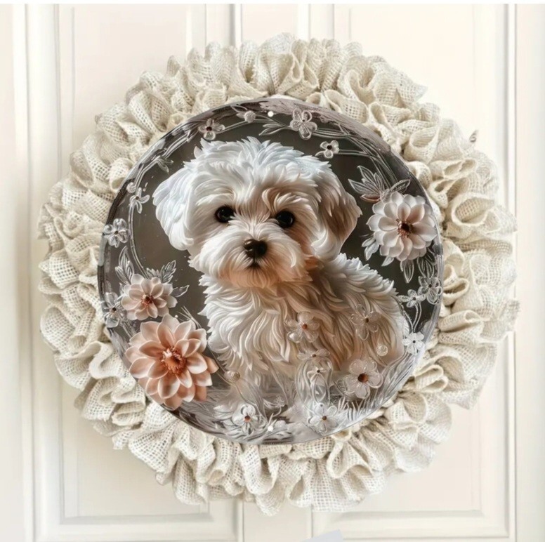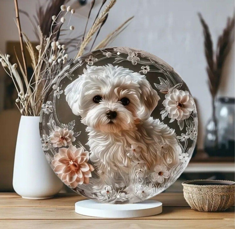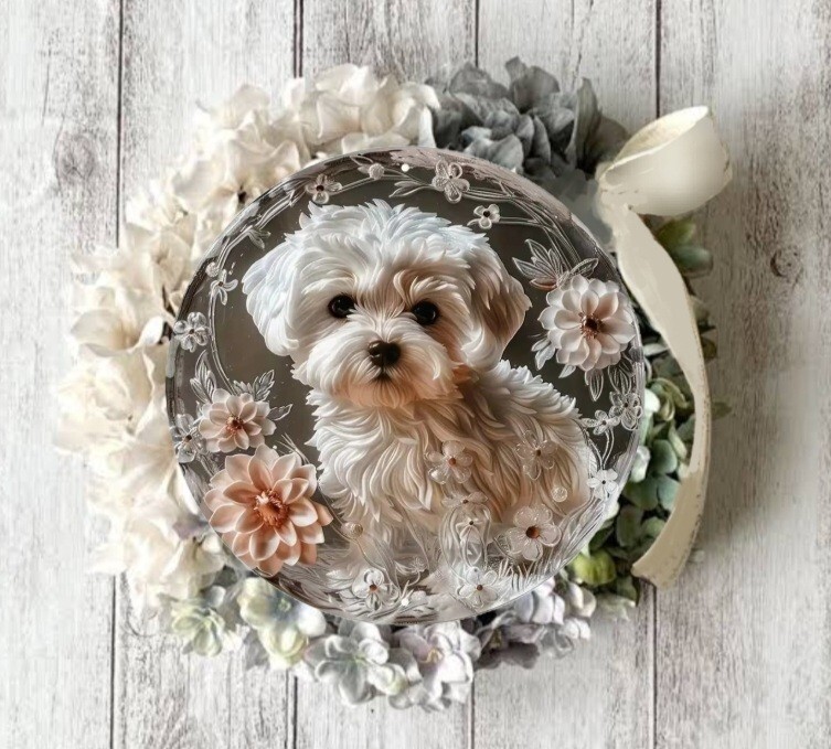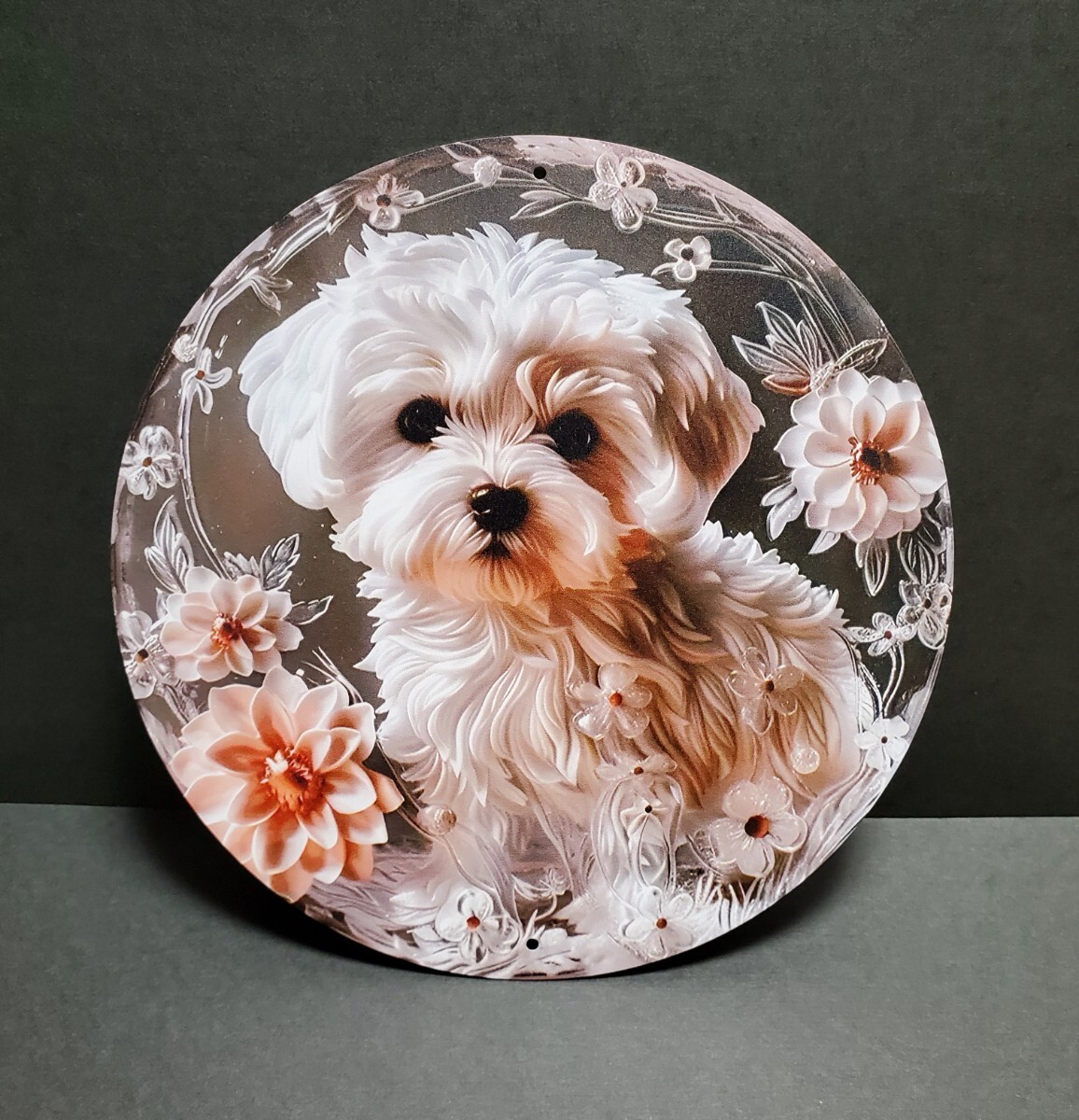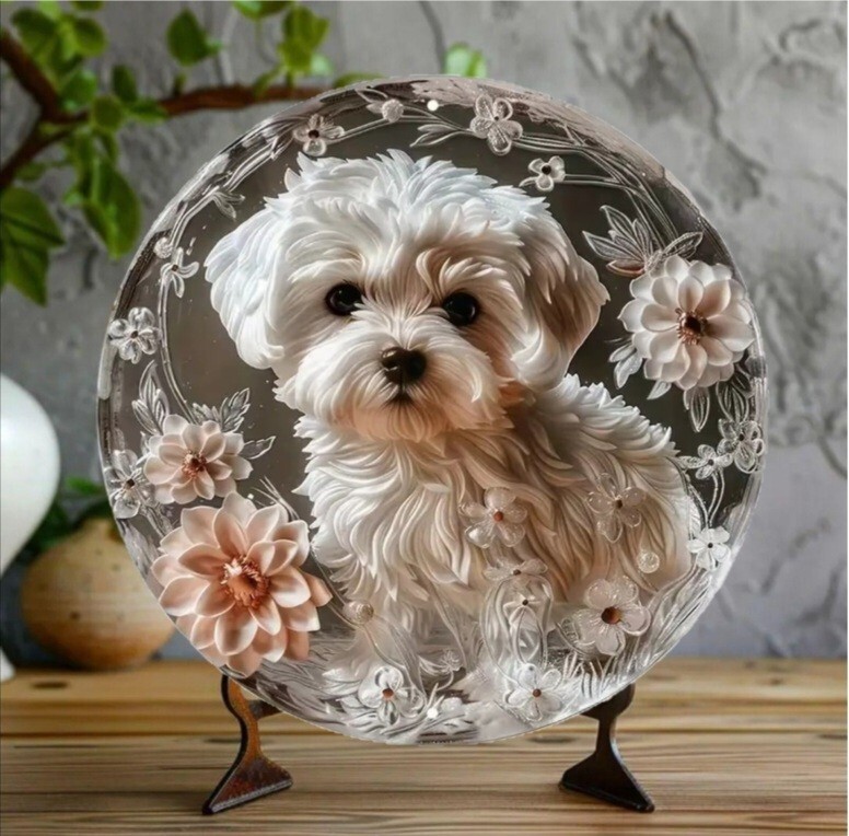 アルミニウムのメタルボードに3Dのプリント技術で描かれた犬のメタルアートです。