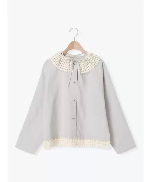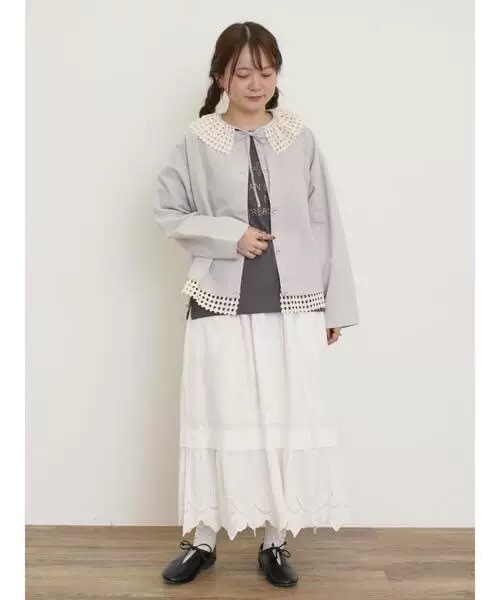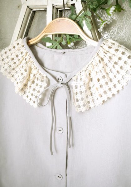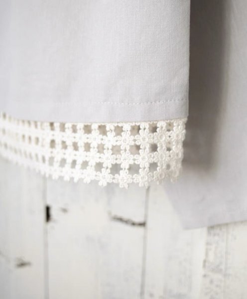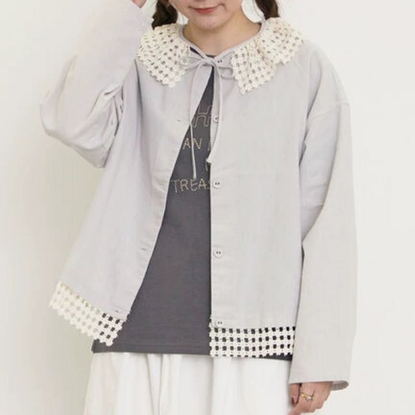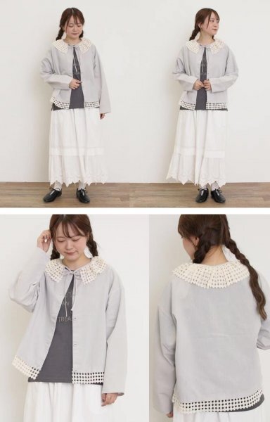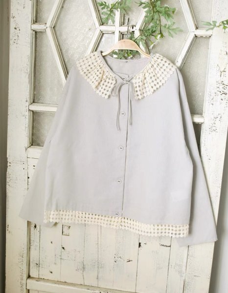 mz 0704 羽織物 アウター トップス チュニック 可愛い襟 フリーサイズ ナチュラル 綿麻混 グレー