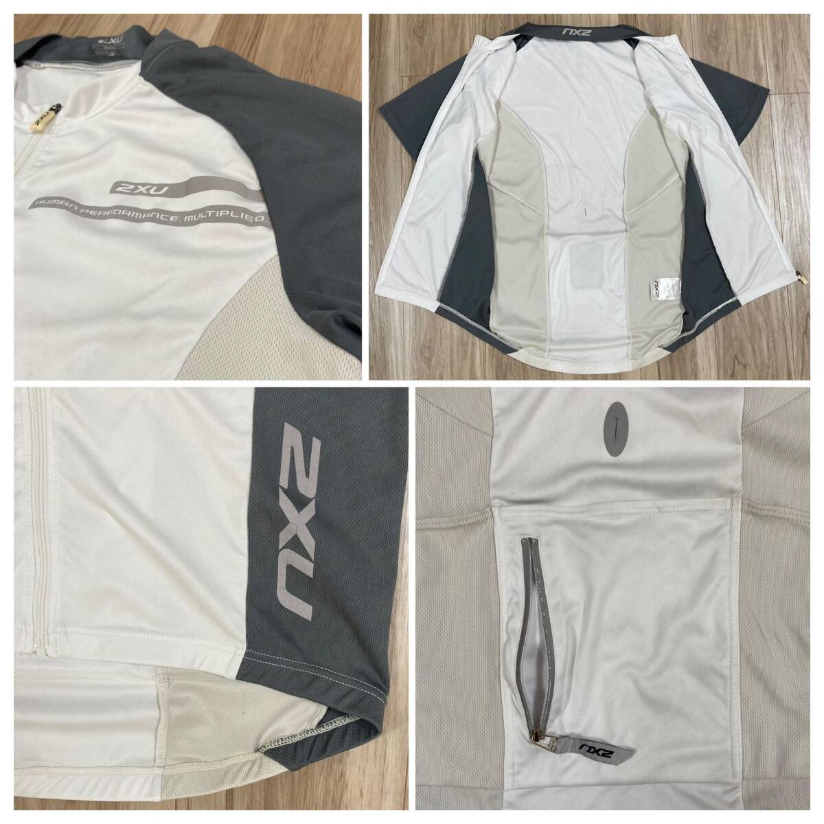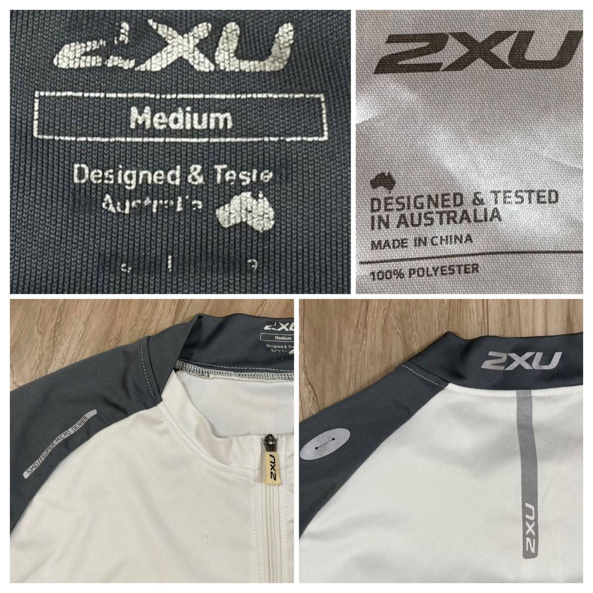 送料230★正規 2XU 海外 Mサイズ メンズ 半袖 サイクルジャージ 速乾素材 多生地 3+1ポケット/イヤホンホール付き 良質品 n280 ホワイト系