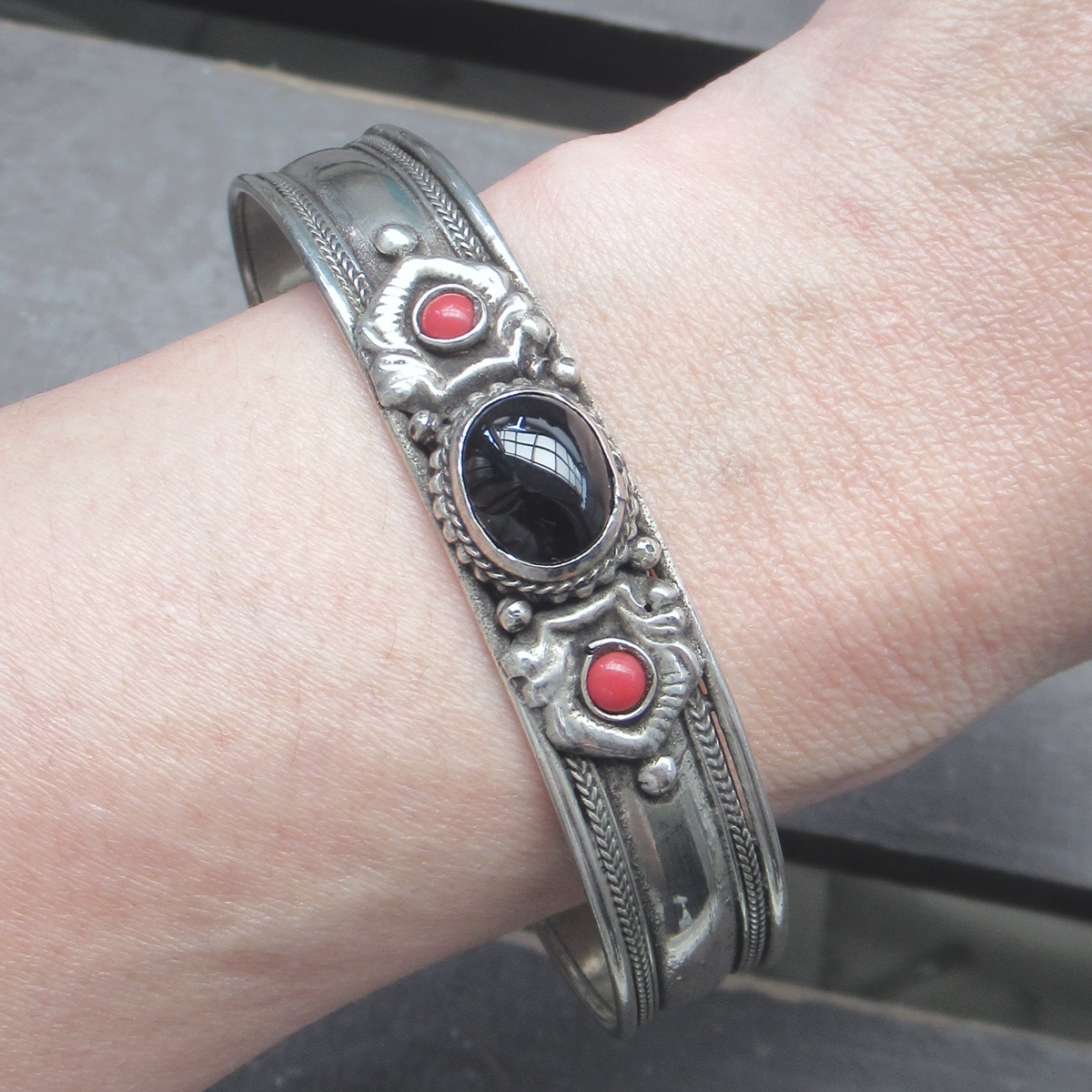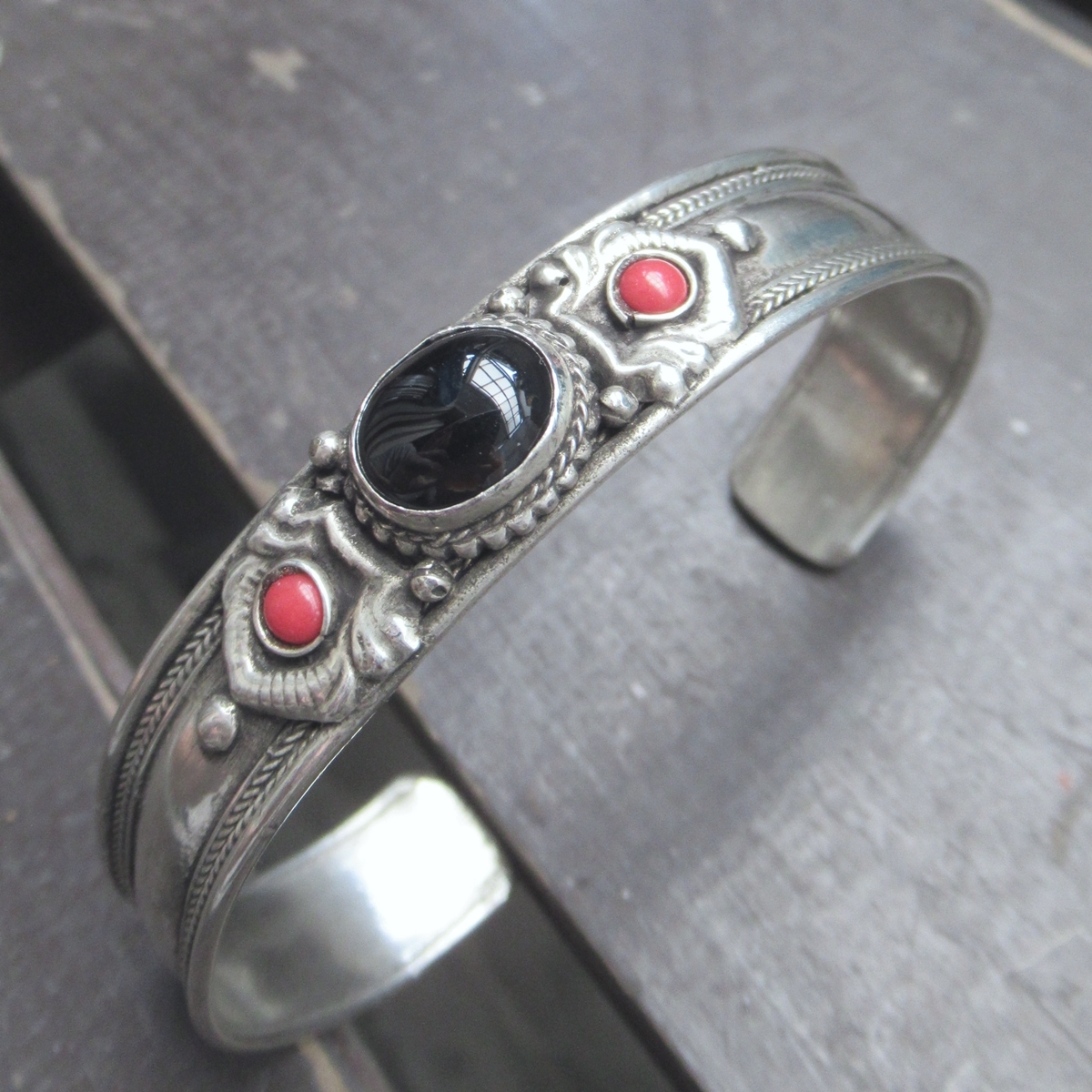 オニキス*ホワイトメタルバングル 天然石