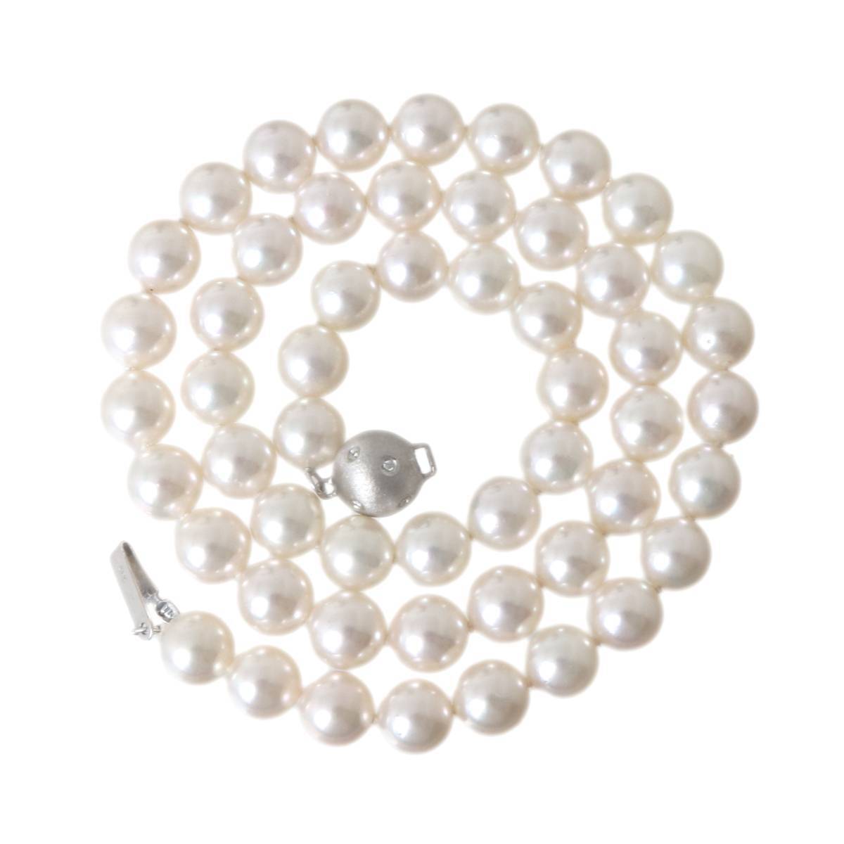【担当より一言】 | 本商品は、上品な輝きを放つ本真珠のパールネックレスです。ピンク系オフホワイトの珠が連なり、首回り約43cmのデザインで、7.4~7.8mmの珠が美しく配置されています。留め具にはK14WG(ホワイトゴールド)が使用され、585の刻印が施されています。重量は約36.3gで、しっかりとした存在感があります。中古品でありながらABランクの美品、非常に良好な状態を保っています。特別なシーンをより華やかに演出する一品です。 |
