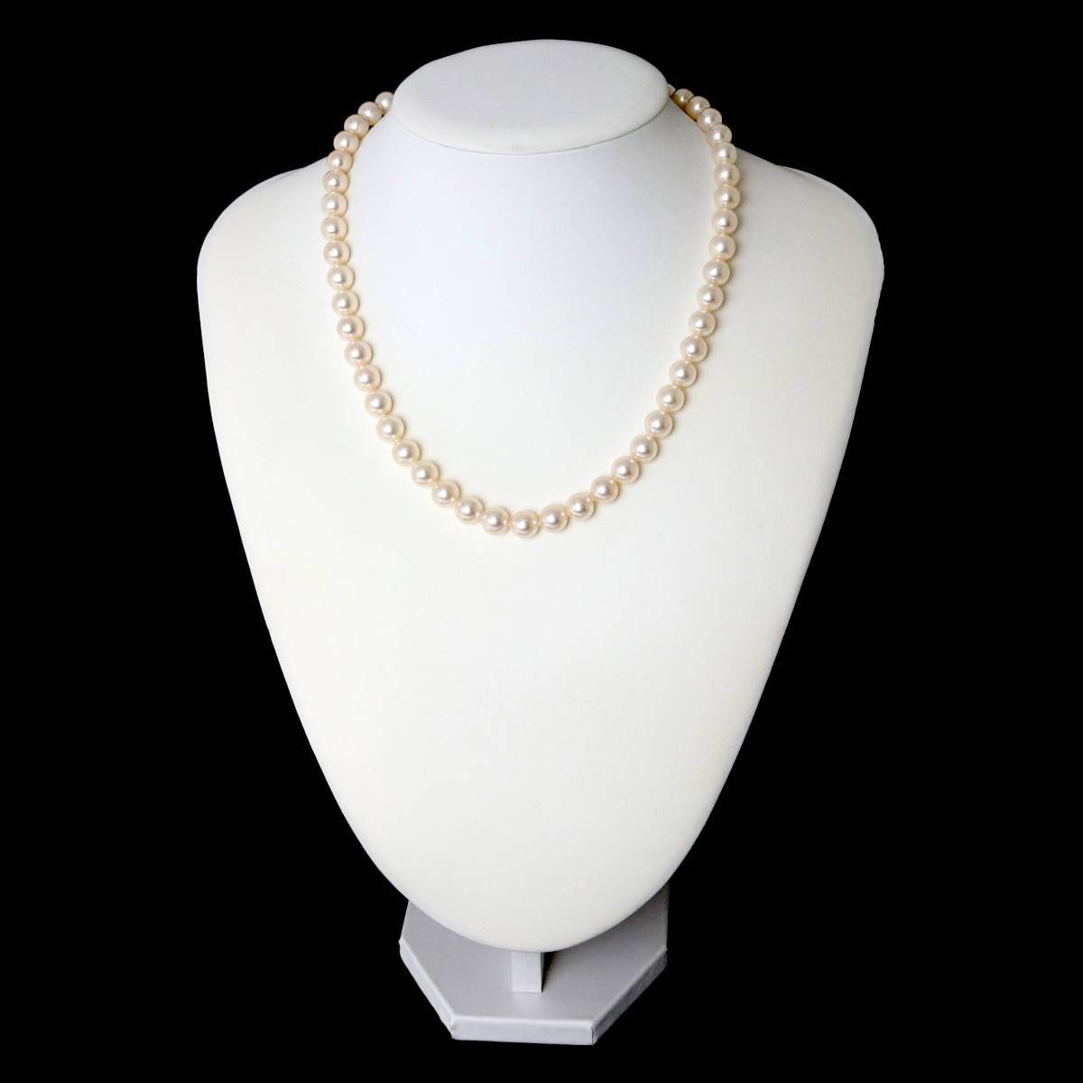 【サイズ】 | 首回り約43cm パール7.4~7.8mm珠 重量約36.3g ※サイズはマイクロメジャーおよび一部アナログメジャー(1mm目盛)で測っておりますが、実寸目視確認のため多少の誤差はご容赦くださいませ。 |