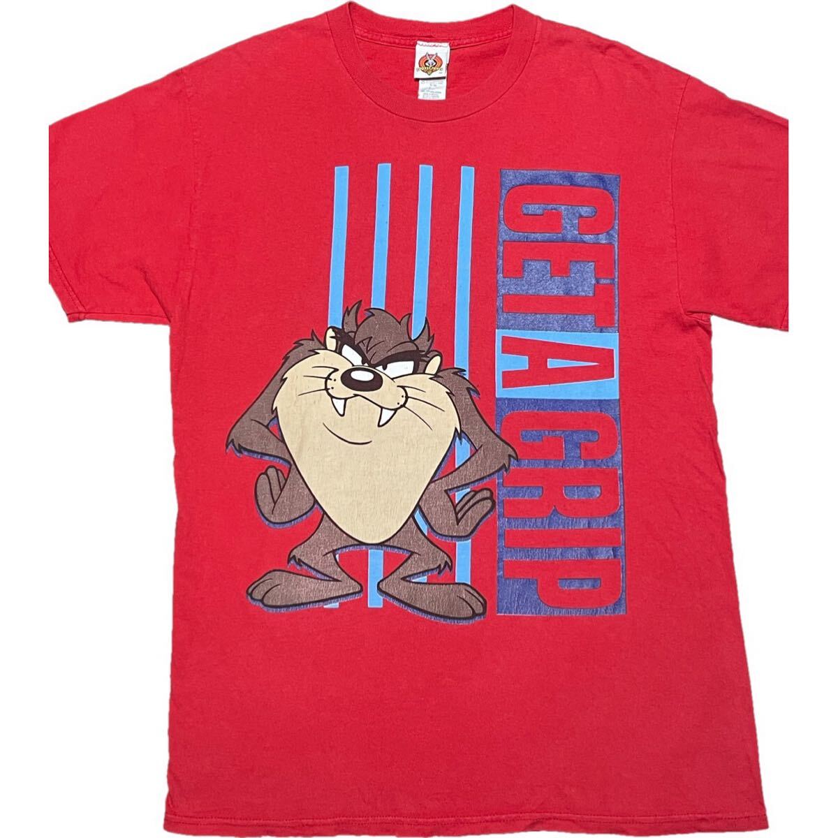 タズマニアン・デビルは恐ろしいほどの食欲の持ち主のキャラクターで、落ち着けやしっかりしろと言った意味のフレーズである「GET A GRIP」というメッセージが入ったキャラクターTシャツ好きにおすすめの一品です。