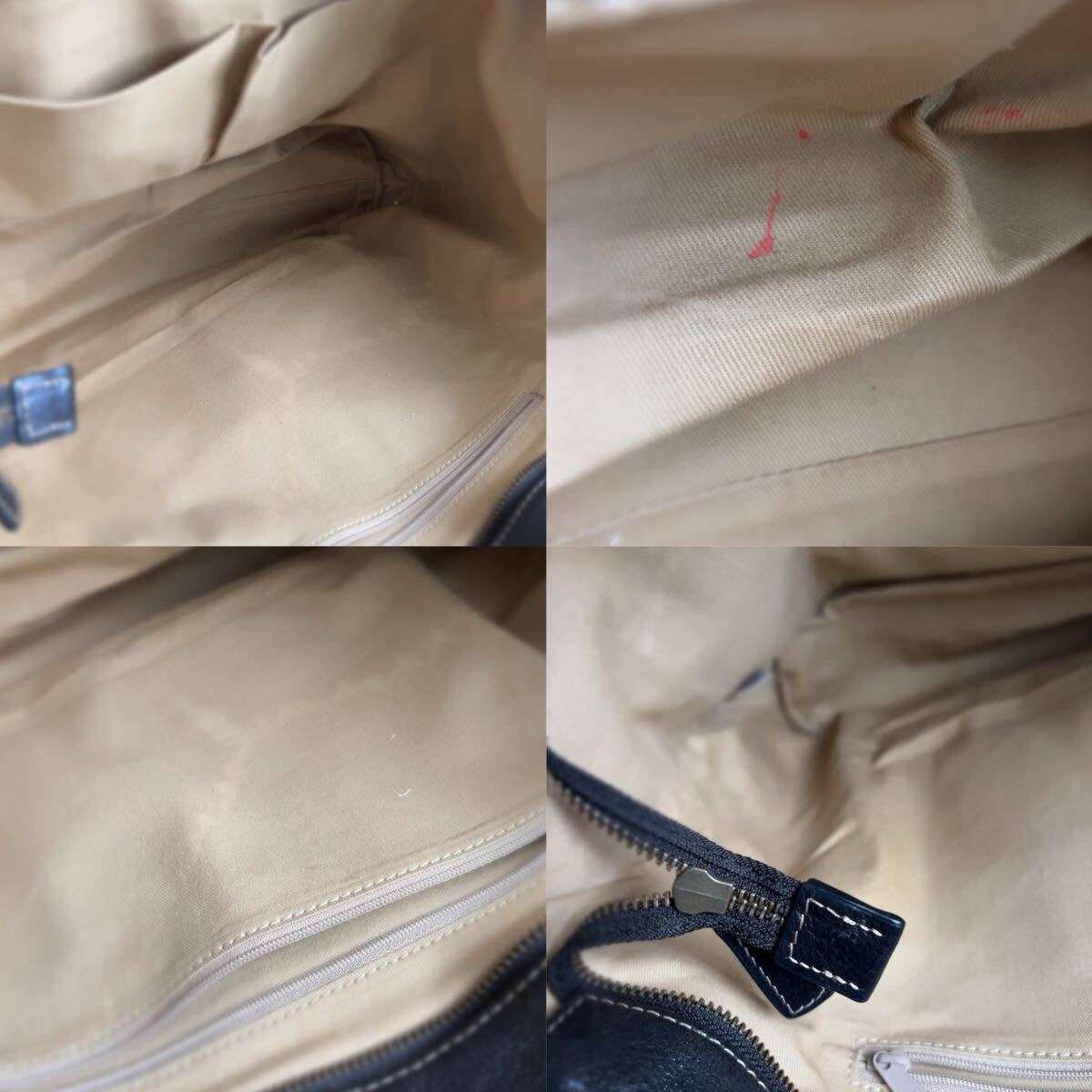 内側に水をこぼしたシミ、ピンク系のインクのような汚れがあります。外側は、写真にある通りシワがある部分もありますが比較的綺麗な方だと思います。外側の見た目の状態から、目立つ汚れなしにしていますが、内側にはあります。