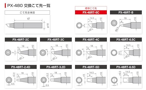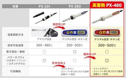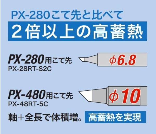 - 高蓄熱量のこて先:PX280の2倍以上