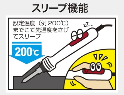 注意事項として、高温設定には十分ご注意ください。ご使用の際は、やけどや火災の原因となることがあるため、適切な取扱いをお願い致します。また、温度スリープ機能により、無駄な熱の低減が可能ですが、各作業に応じた設定を行うことをお勧めします。