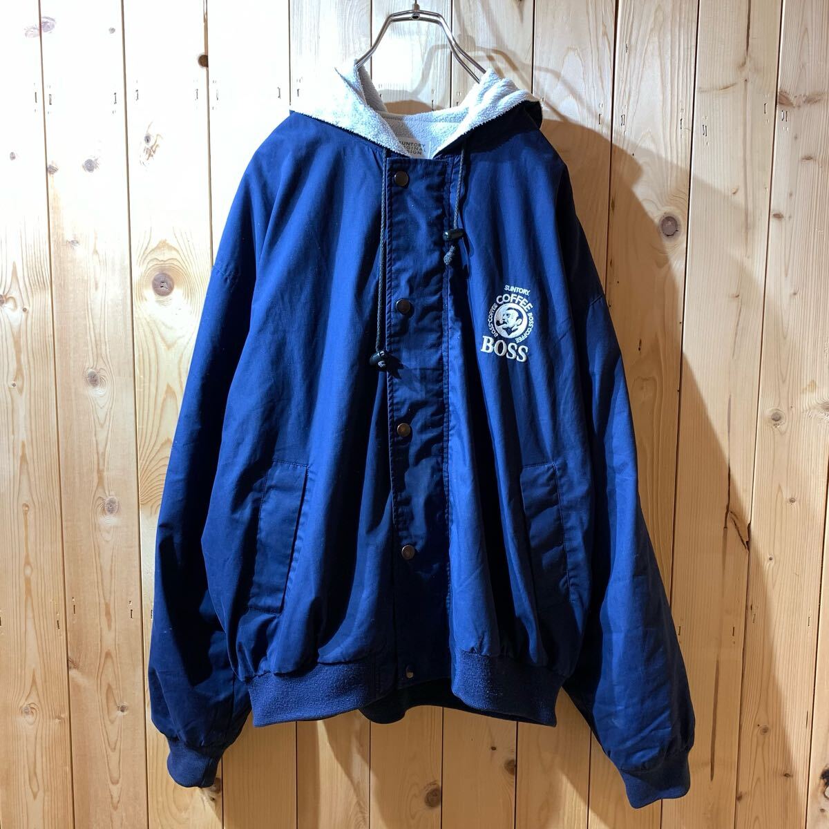 [YUK296]SUNTORY サントリー フード付きジャケット ブルゾン 紺 ネイビー