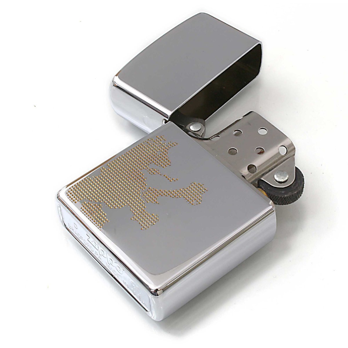 R.NEWBOLD(アールニューボールド)の試作品ZIPPOです。通常、R.NEWBOLD(アールニューボールド)のロゴ文字彫刻がZIPPOのどこかに刻印されますが、このZIPPOには刻印されておりません。商品発売前に作られた希少な逸品!ブランドシンボルのライオンがデザインされたZIPPOです。クロームメッキ、エッチング色入れ。