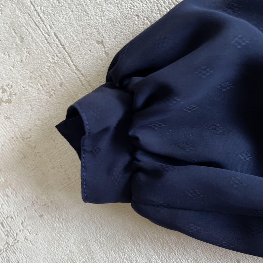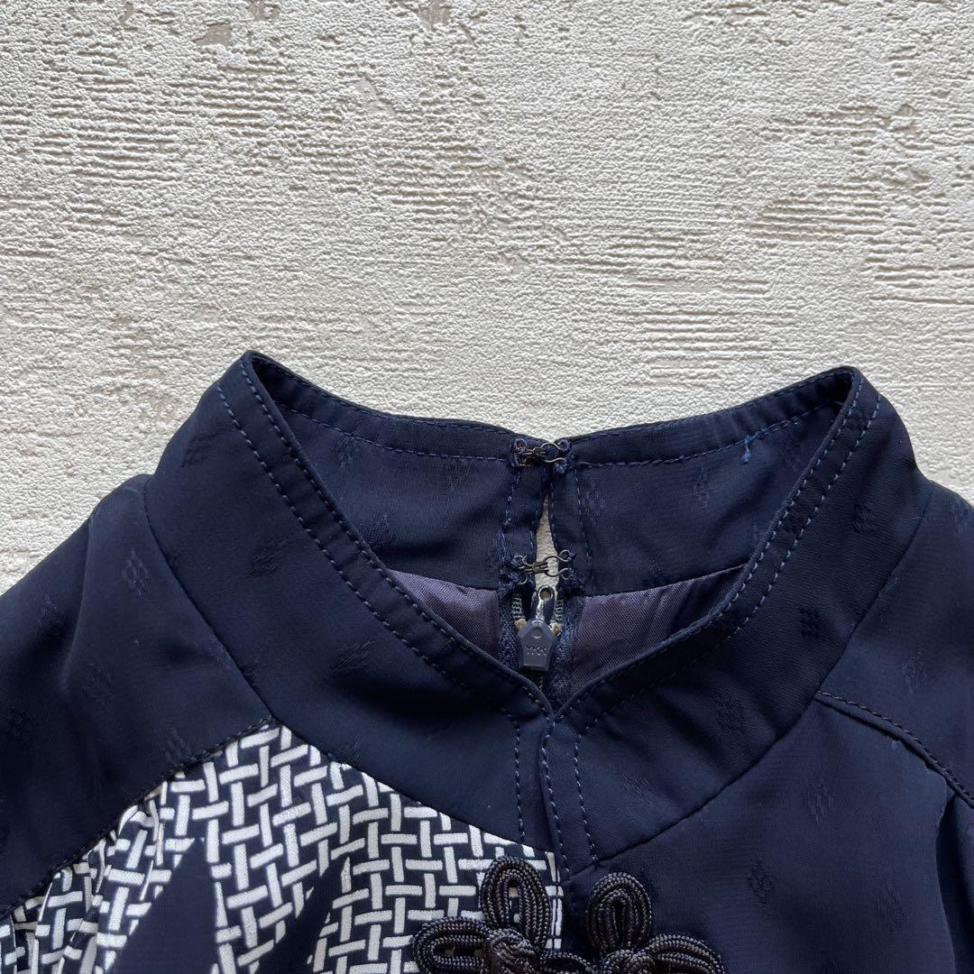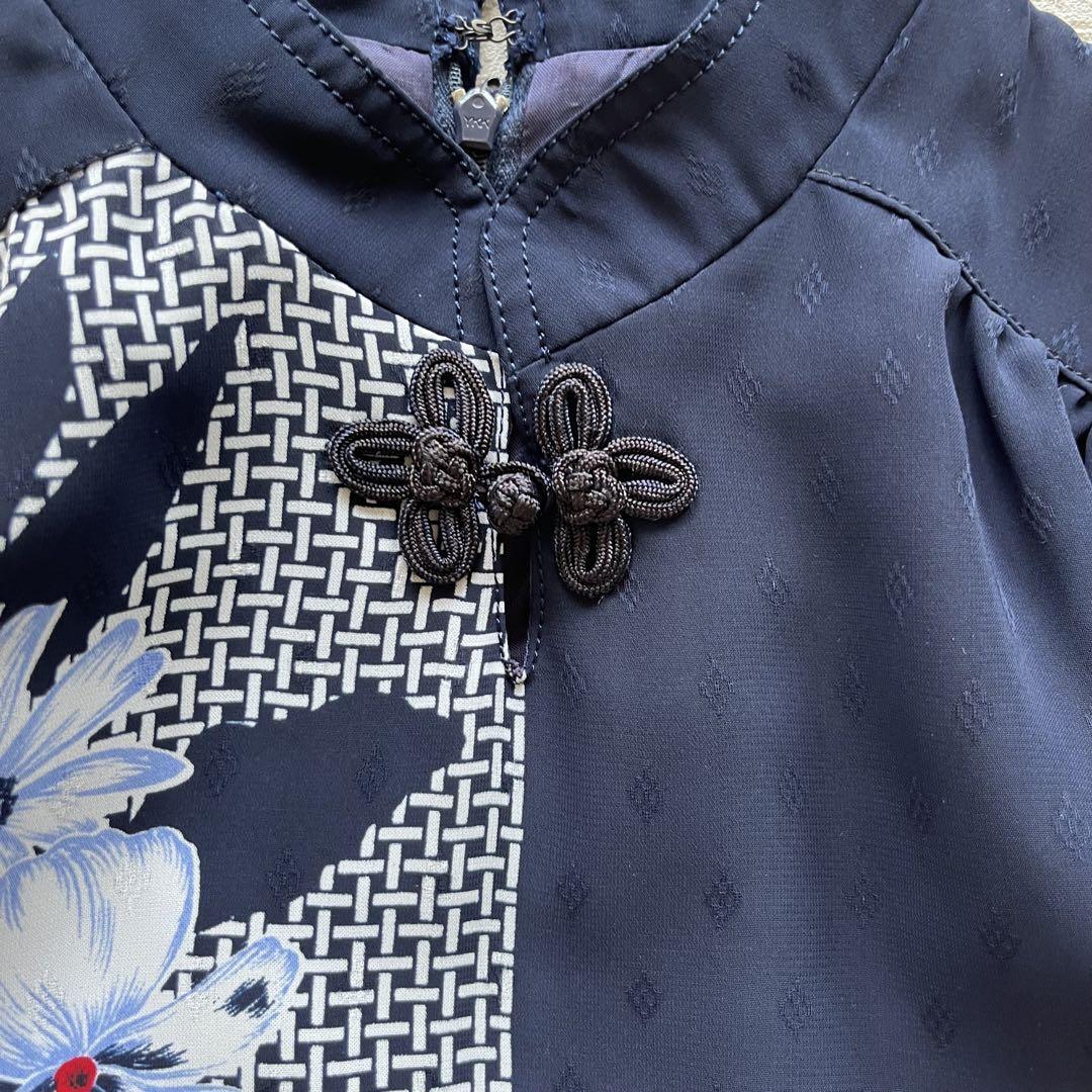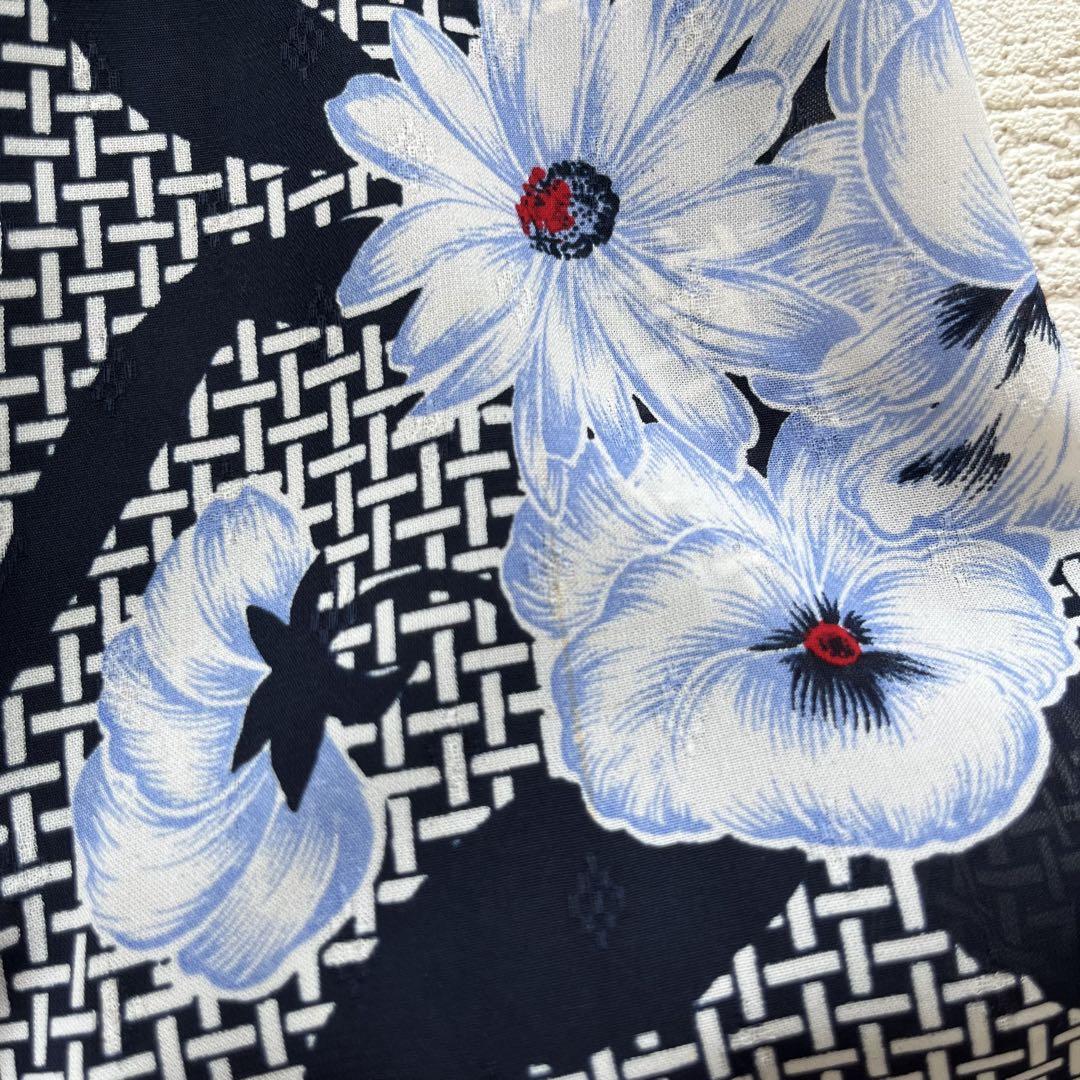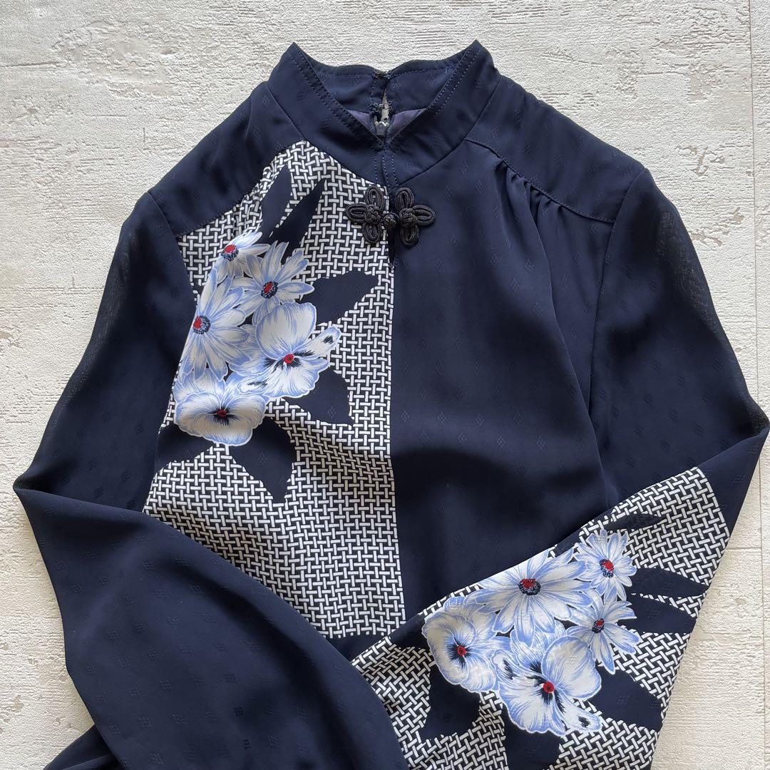 昭和レトロ花柄長袖ロングワンピースアシンメトリー柄フリーサイズネイビーP2