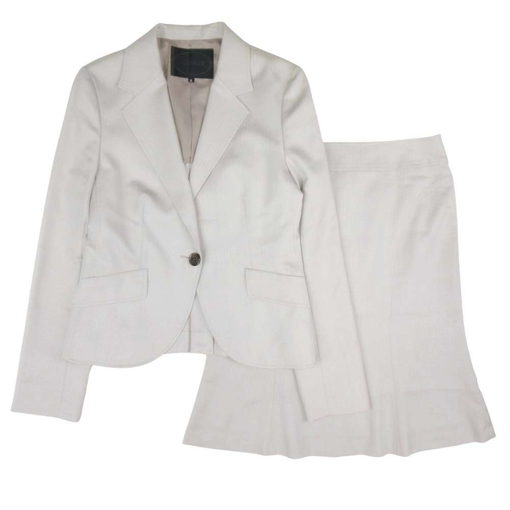 良品 UNTITLED アンタイトル セットアップ 2点 スーツ テーラードジャケット 背抜き 膝丈スカート 2 ライトベージュ グレージュ