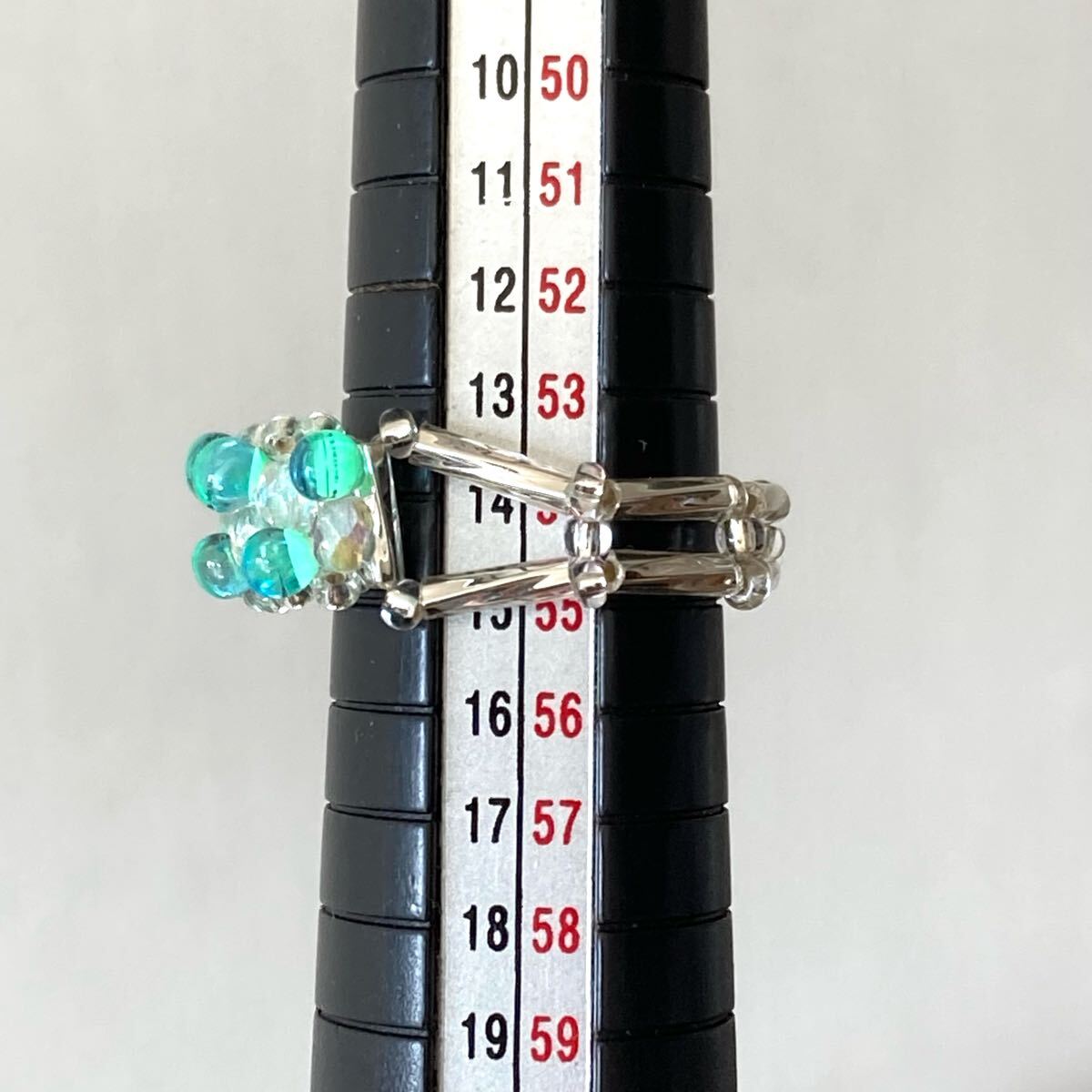 13-15号 ビーズ リング 指輪 マガ玉ビーズとミニチェコビーズと竹ビーズのリング ミントグリーン系 です。