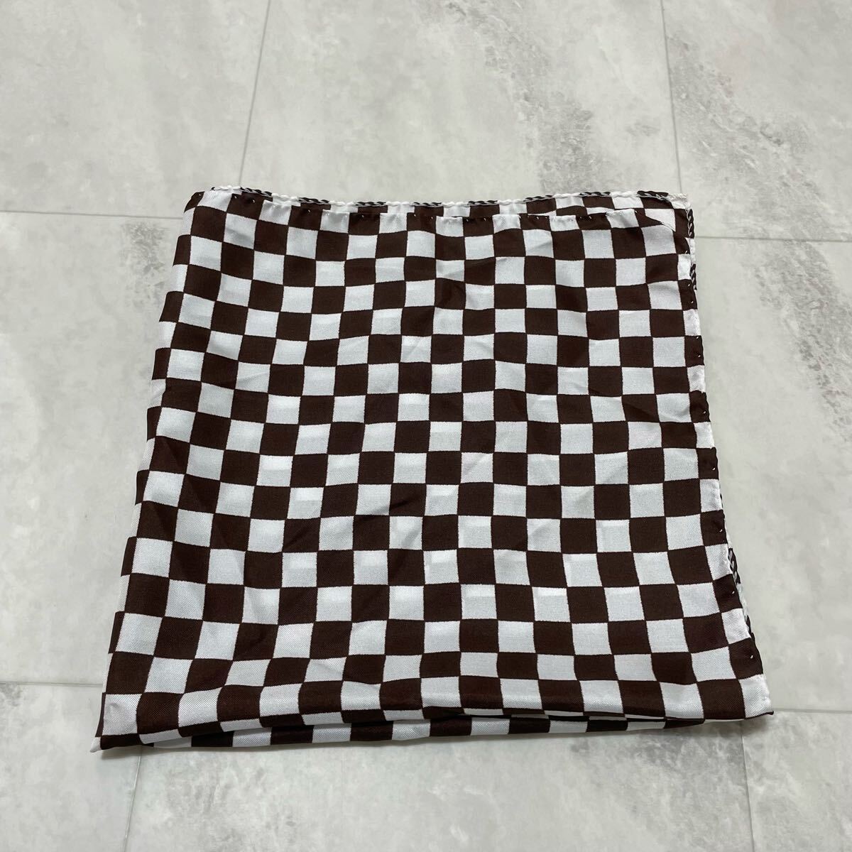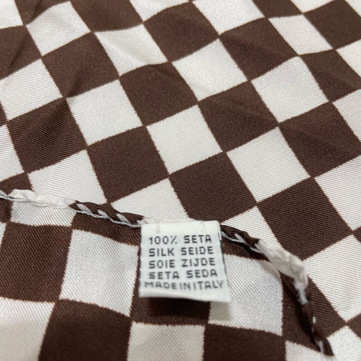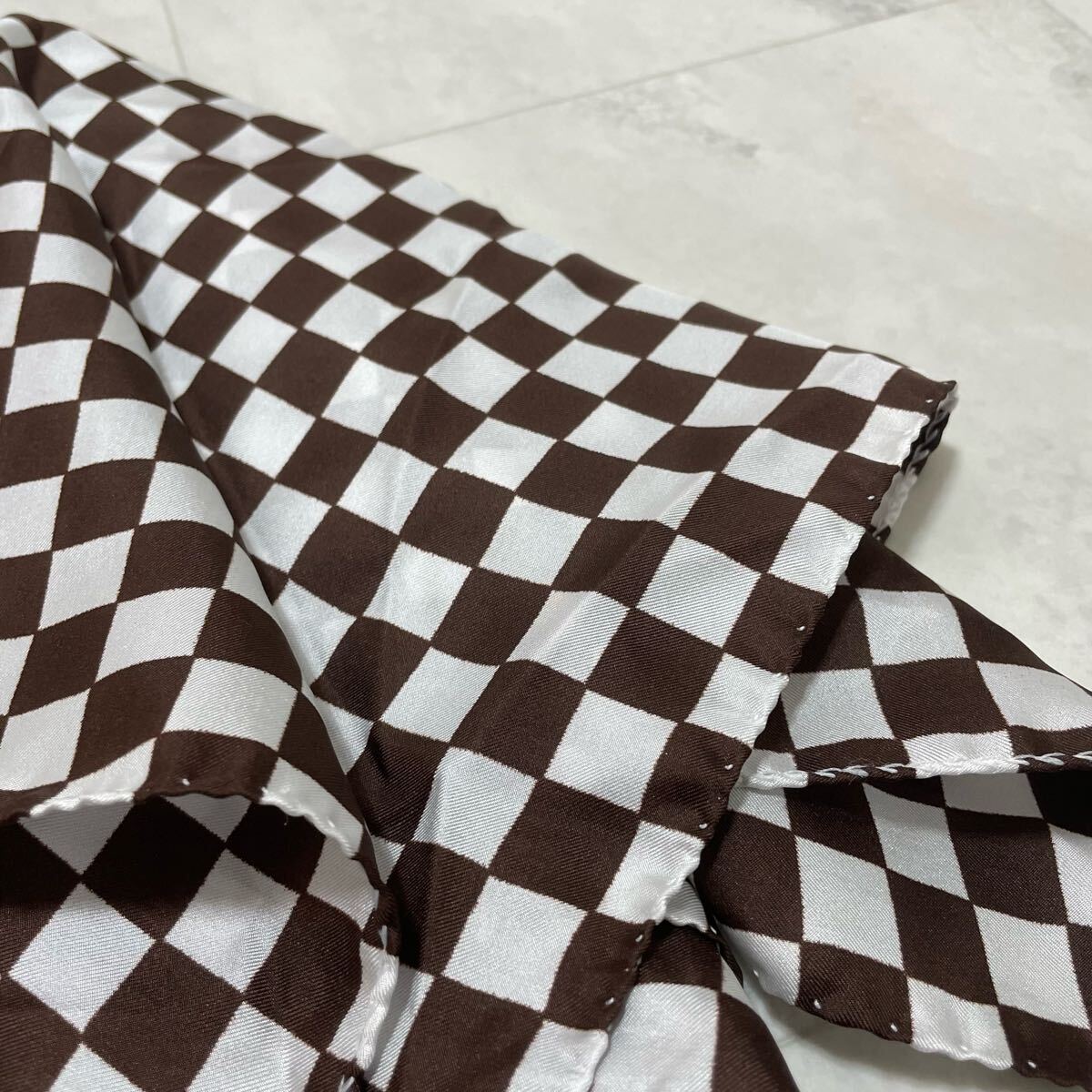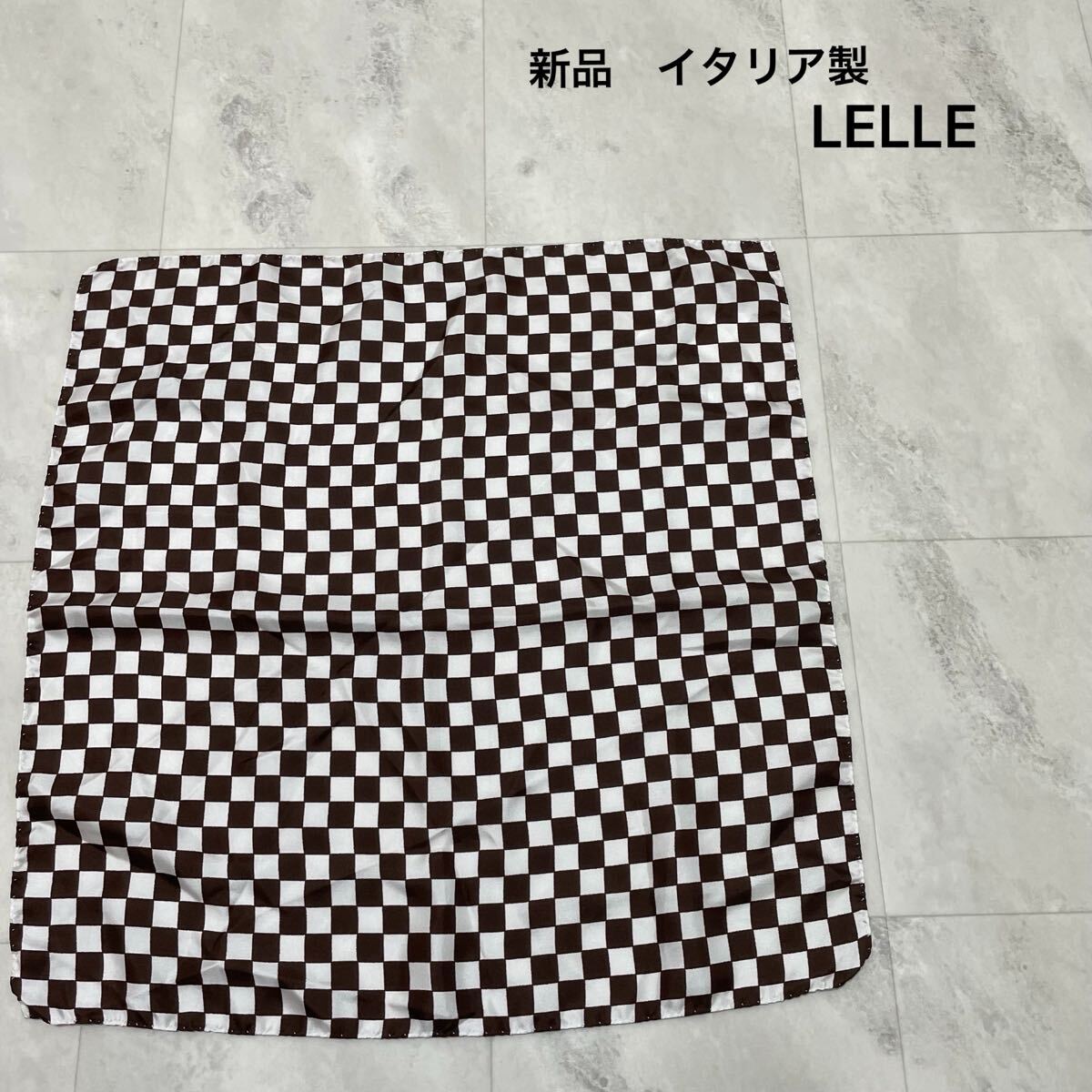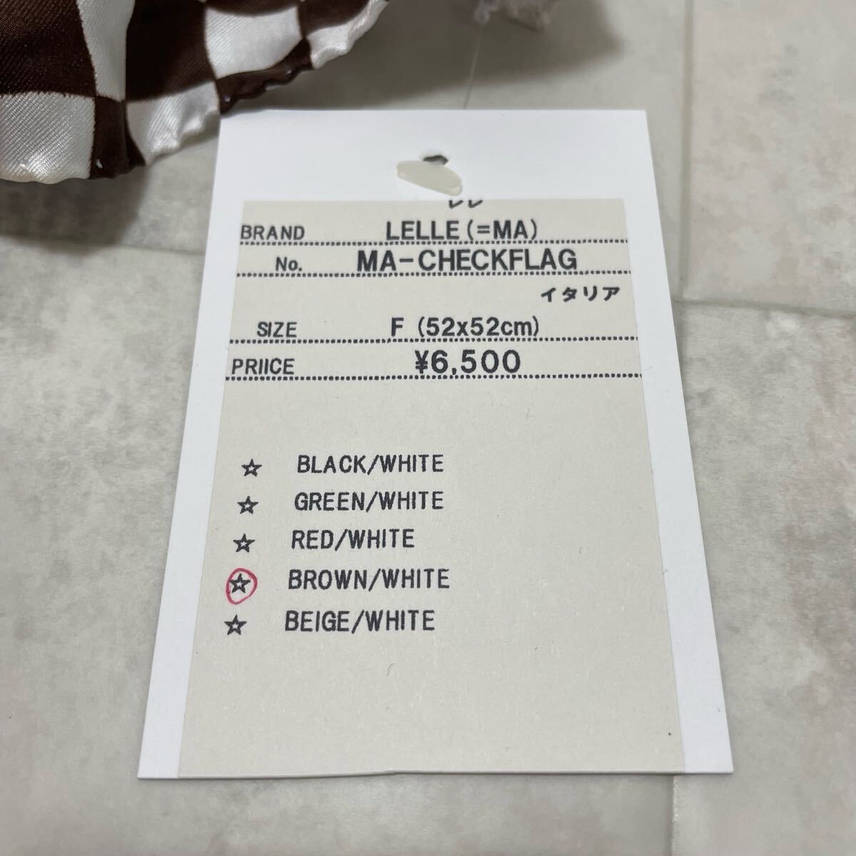 新品 イタリア製 LELLE レレ バンダナ ハンカチ スカーフ シルク100% 高級 フィレンツェブランド ブラウン ホワイト 玉SS3432