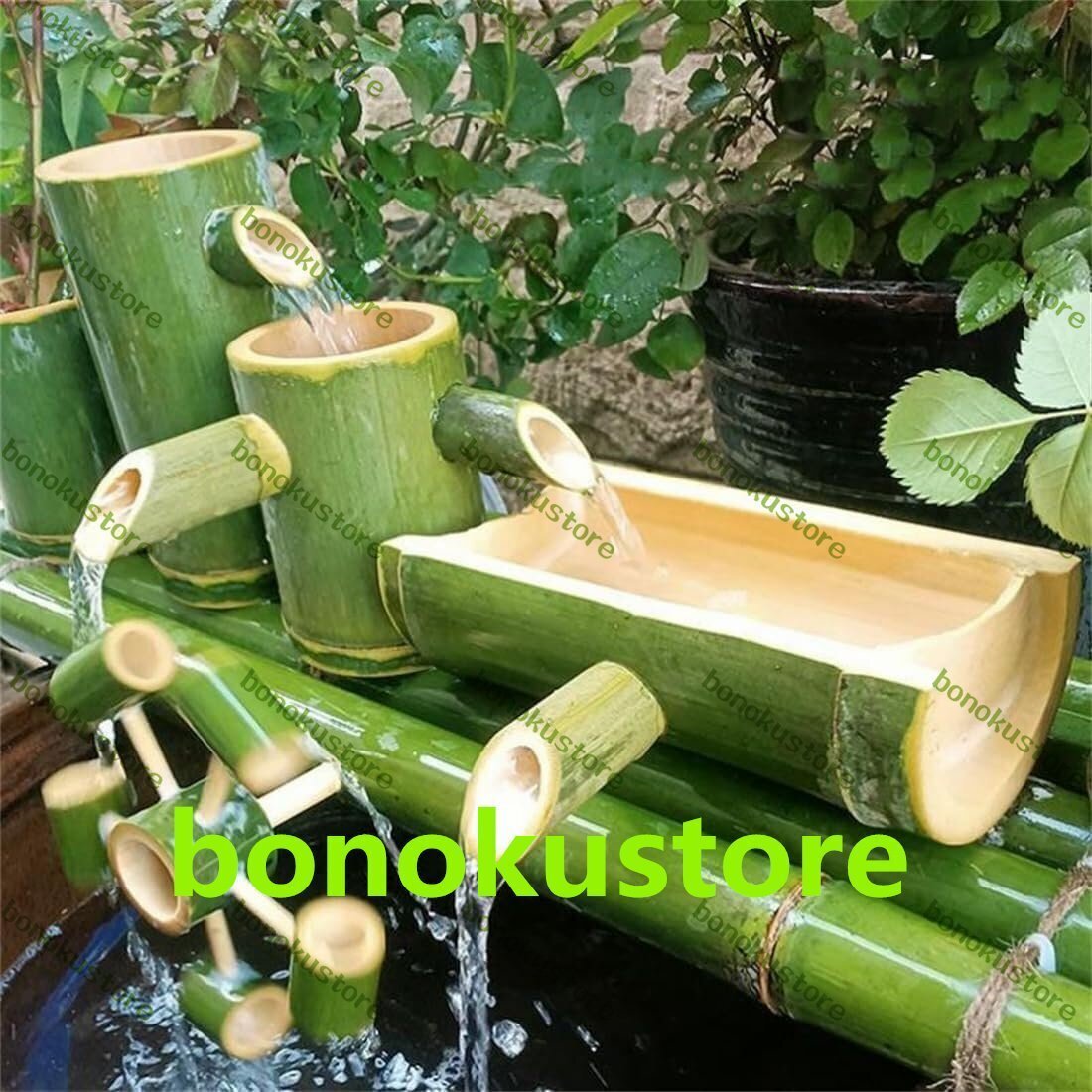 水道管の上部と下部は熟練した職人が手作業で接続しているので、折れたり落ちたりする心配がありません。 竹で手作りされています。天然の原材料を使用しているため、竹の表面は約 15 日でわずかに黄色に変わりますが、これは正常です。 この像は、リビングルーム、寝室、ダイ