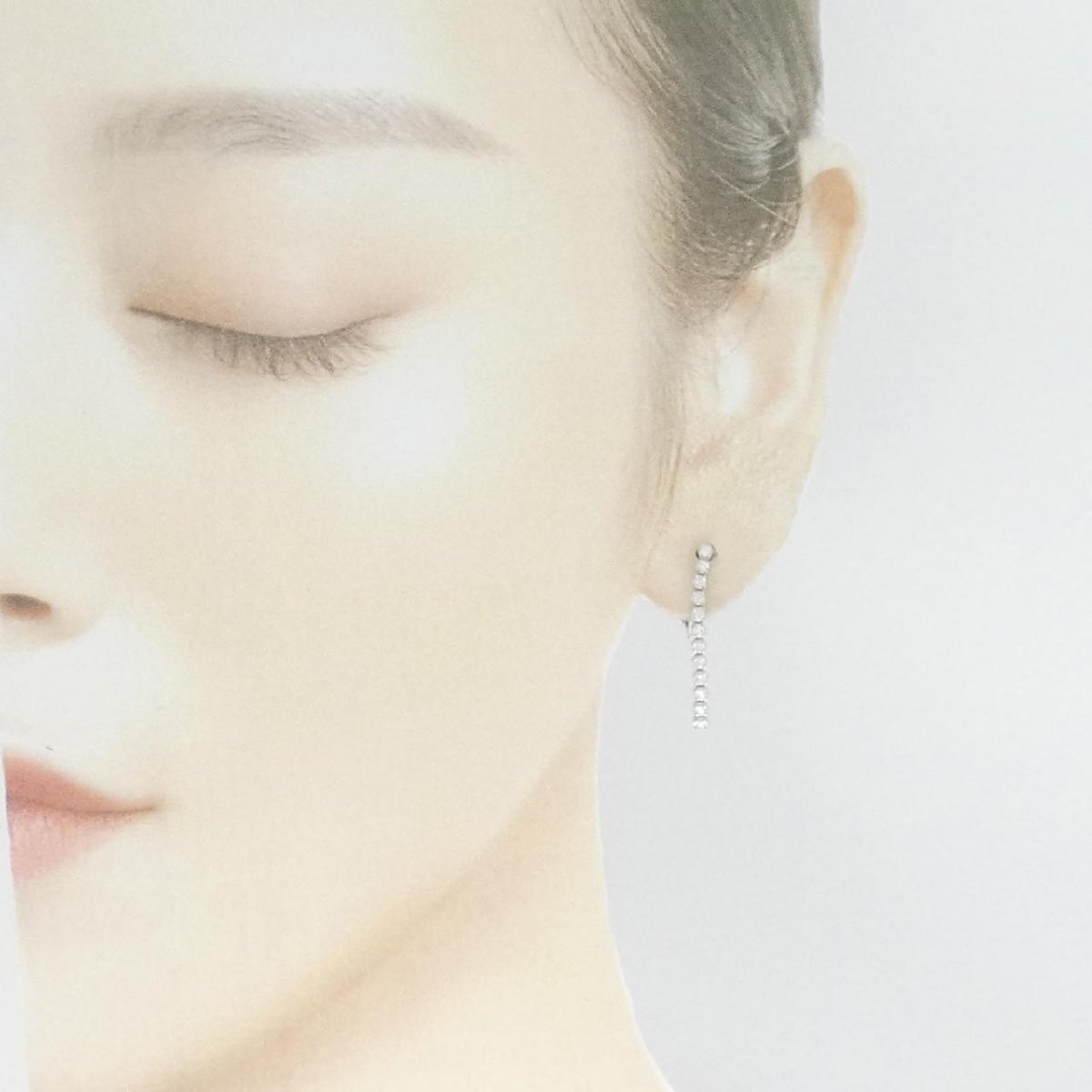 クリアに煌めくダイヤモンドを並べたイヤリング。耳元で揺れてキラキラと光を放ちます。