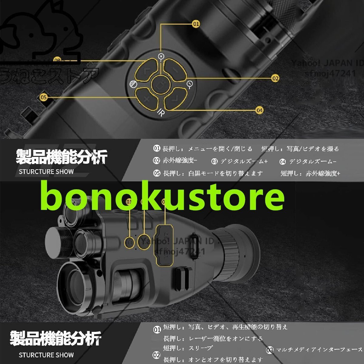 暗視装置の動作原理は、機械から放出される赤外線に依存することです。この光波は肉眼では見えず、レンズを介してのみ暗視装置のメインコントロールチップに送信されます。画像に変換されて暗視装置に送信されます。大きな高精細画面で視聴してください。に夜、屋外に適しています。小さいサイズ、夜の狩猟、キャンプ、釣り、鳥、見て、スカウトゲーム、セキュリティ、そして監視、夜間のナビゲーション、野生生物観察などの屋外活動。【バッテリー】4800 mAhバッテリー、日中10時間以上のバッテリー寿命、夜間赤外線モードで4時間以上のバッテリー寿命(補助装置なしで、屋外で長期間使用できます)【赤外線】850nm + 940nmの高出力デュアル赤外線構成で、近距離と遠距離の両方の環境に適しています(1つの赤外線は近視用にも使用できますが、実際の暗視愛好家のニーズを満たすことはできません。より良い暗視効果を得るには、私たち(ハードウェアコストの割引を選択しない)【拡張機能】クロスミラー三脚固定具などの拡張機能に接続可能【メインチップ】メインチップの新しいバージョンで、バックグラウンド処理速度が速く、画像が滑らかでスタックせず、128Gメモリカードもサポートしています【Wifi接続】wifi経由でリアルタイムに画像を表示でき、カード内の写真やビデオに直接アクセスできます。また、あらゆるシステムの携帯電話をサポートする携帯電話にダウンロードすることもできます。【画面】3.1インチの大画面で、長時間見てもめまいやめまいがありません。【ズーム】光学ズーム+デジタルズーム、特に光学ズームは、画質を損なうことはなく、ズームインし、スノーフレークノイズは発生しません。仕様:寸法:214 * 103 * 58mm重量:430g拡大電力:1x-24倍IR Power:5Wフレームレート:30fps.電圧:3.7VIR波長(1):850nmIR波長(2):940nmIR照明距離:最大400メートルビデオ解像度:1920 * 1080TFカード:最大128g(含まれていません)チップ:1.近距離でIR充填ライトを直接見ないでください。それ以外の場合は、目を傷つけます。2. 3.7Vの認証電圧でリチウムイオン二次電池を使用してください。3.デフォルトでは、夜間視の十字線機能はオフです。十字線を開けない場合は、間に合うようにお問い合わせください。アフターサービス:ご不明な点がございましたら、メールでお問い合わせください。24時間以内に返信いたします。最良の解決策で。