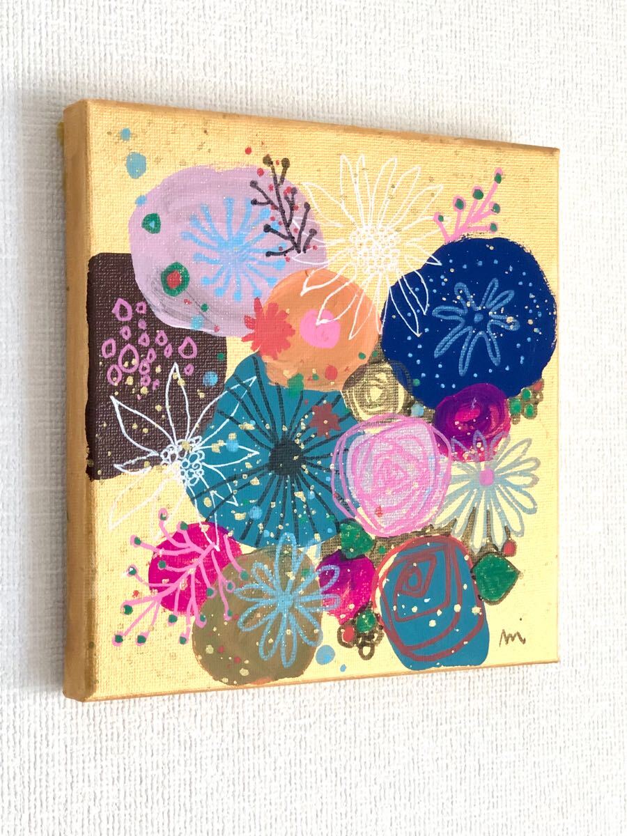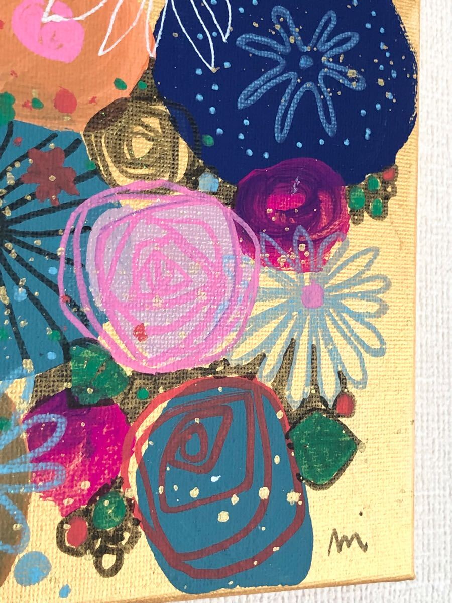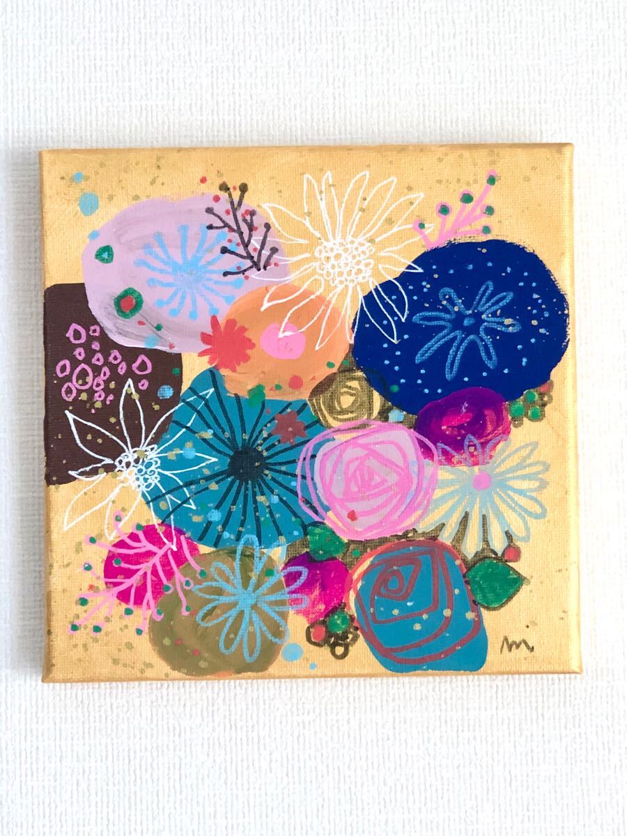 小さなスクエアの可愛い作品です。自由でポップなタッチで、空想のプチブーケを描きました。