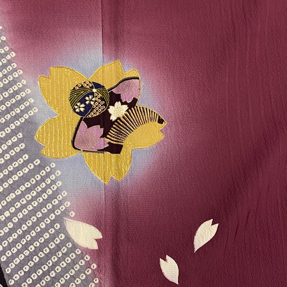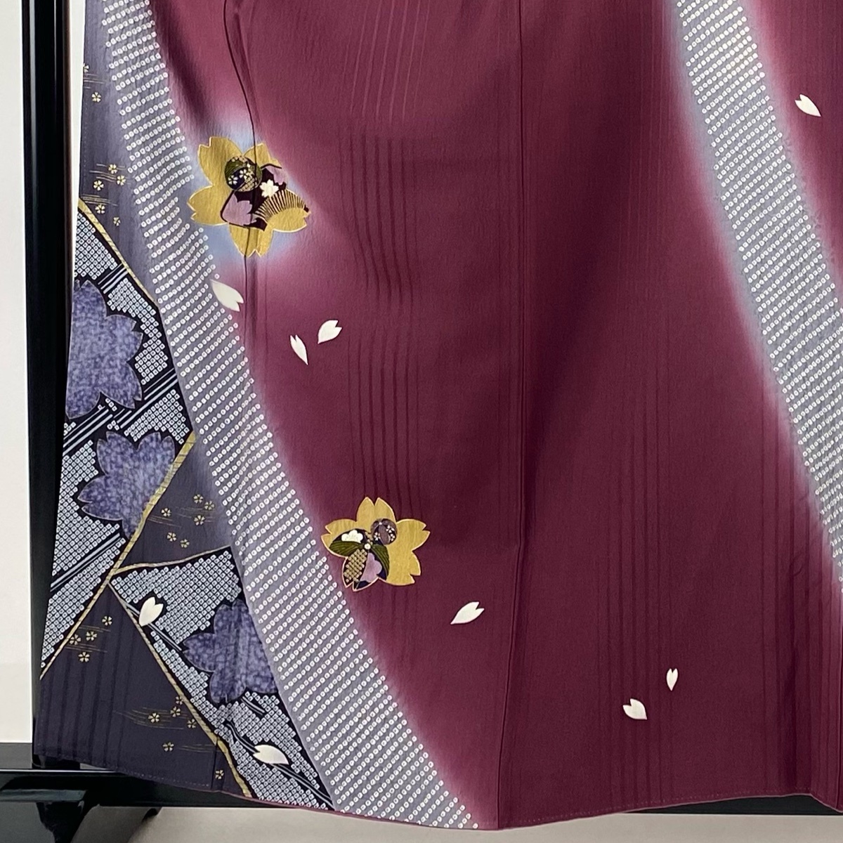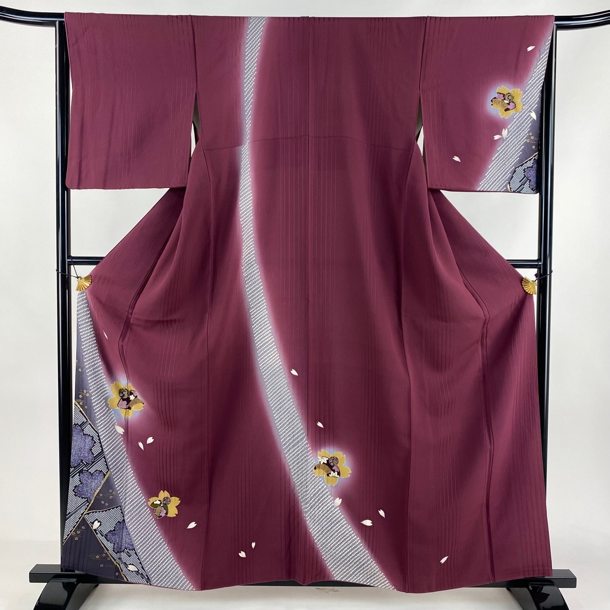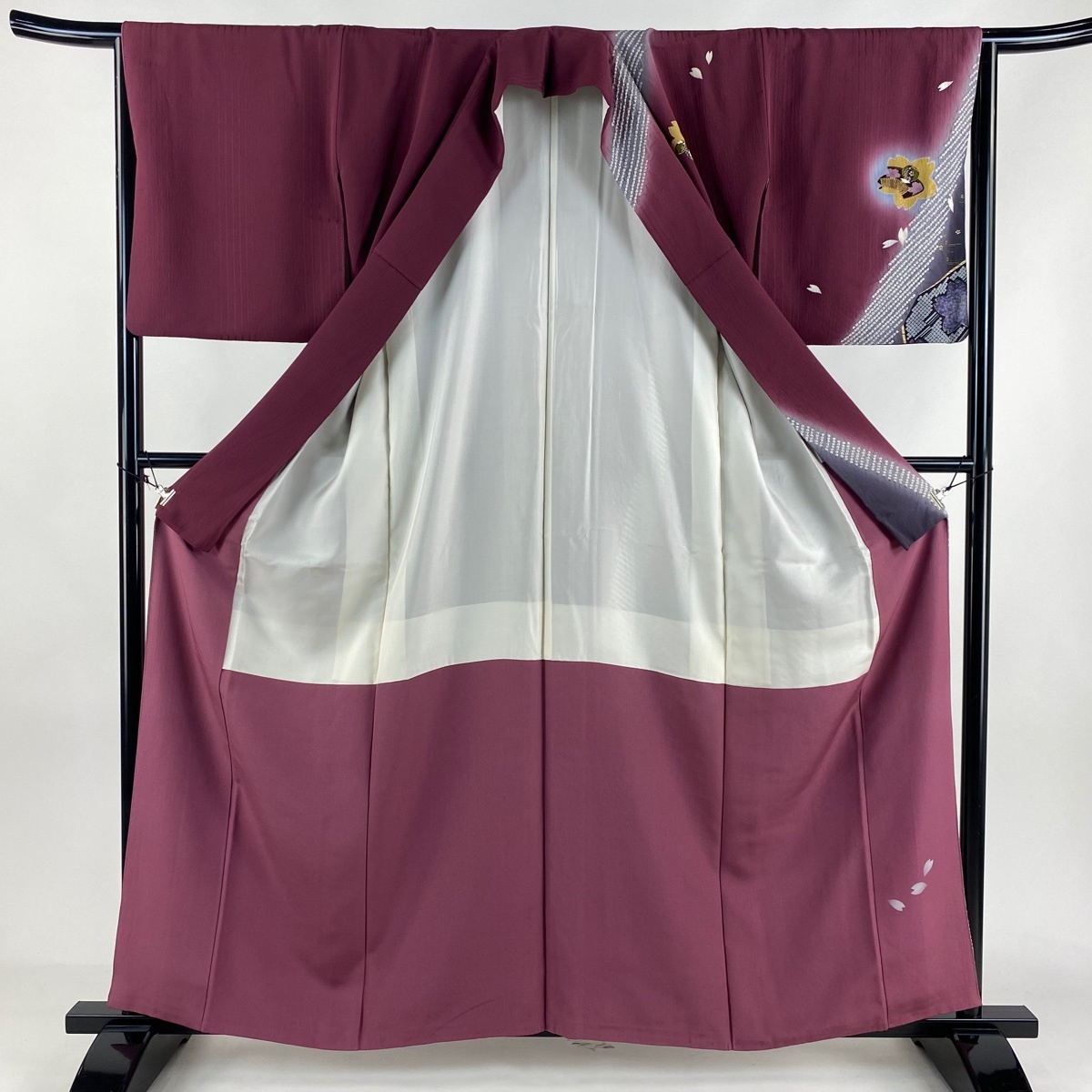 | 付下げ 名品 桜 櫛 金糸 金彩 赤紫 袷 身丈159.5 裄丈64.5 M 正絹 【中古】 |