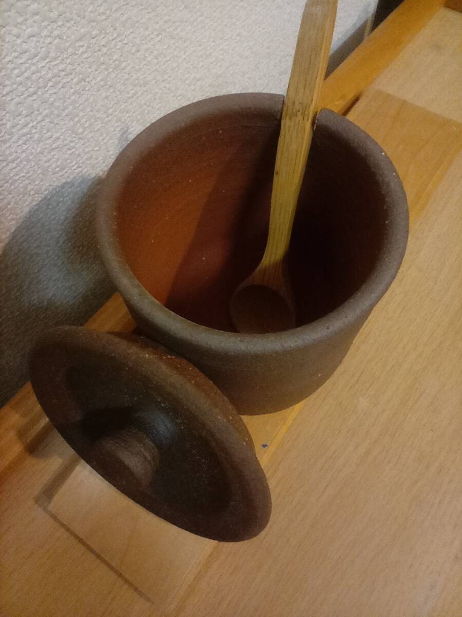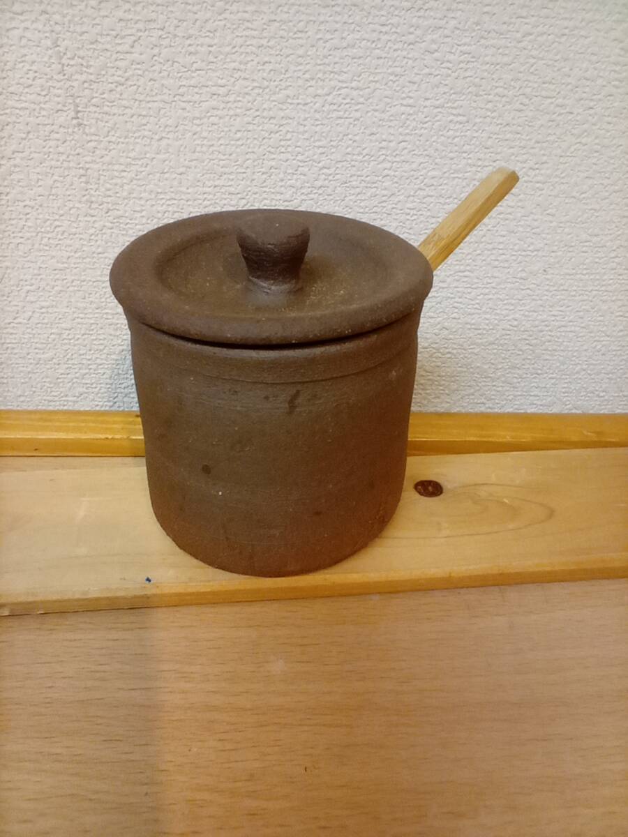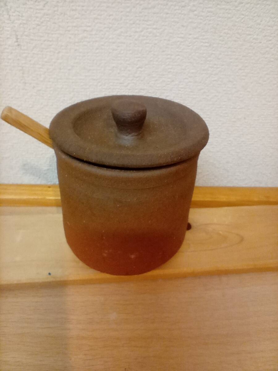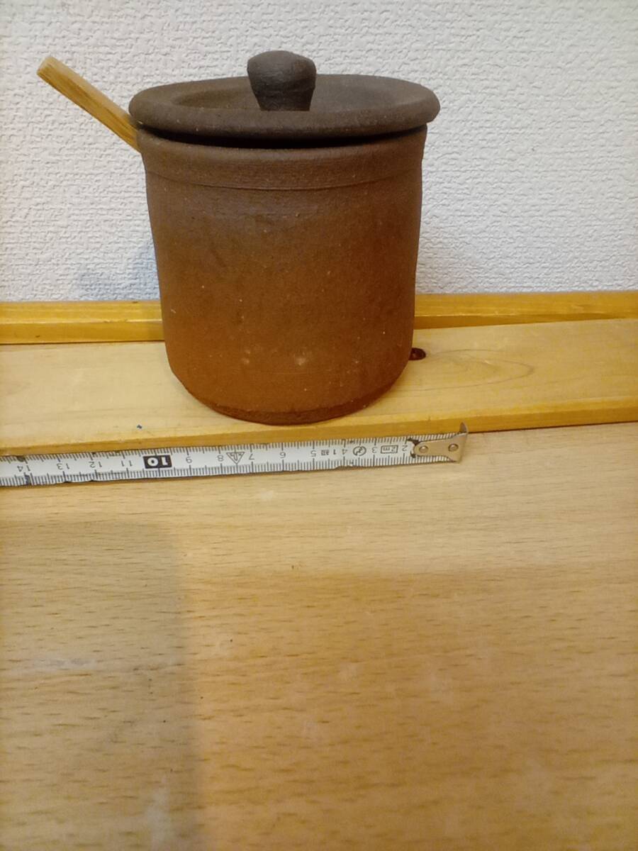 砂糖、塩、調味料入れです 高さ10.0cm横幅9.5cm 竹さじ付です