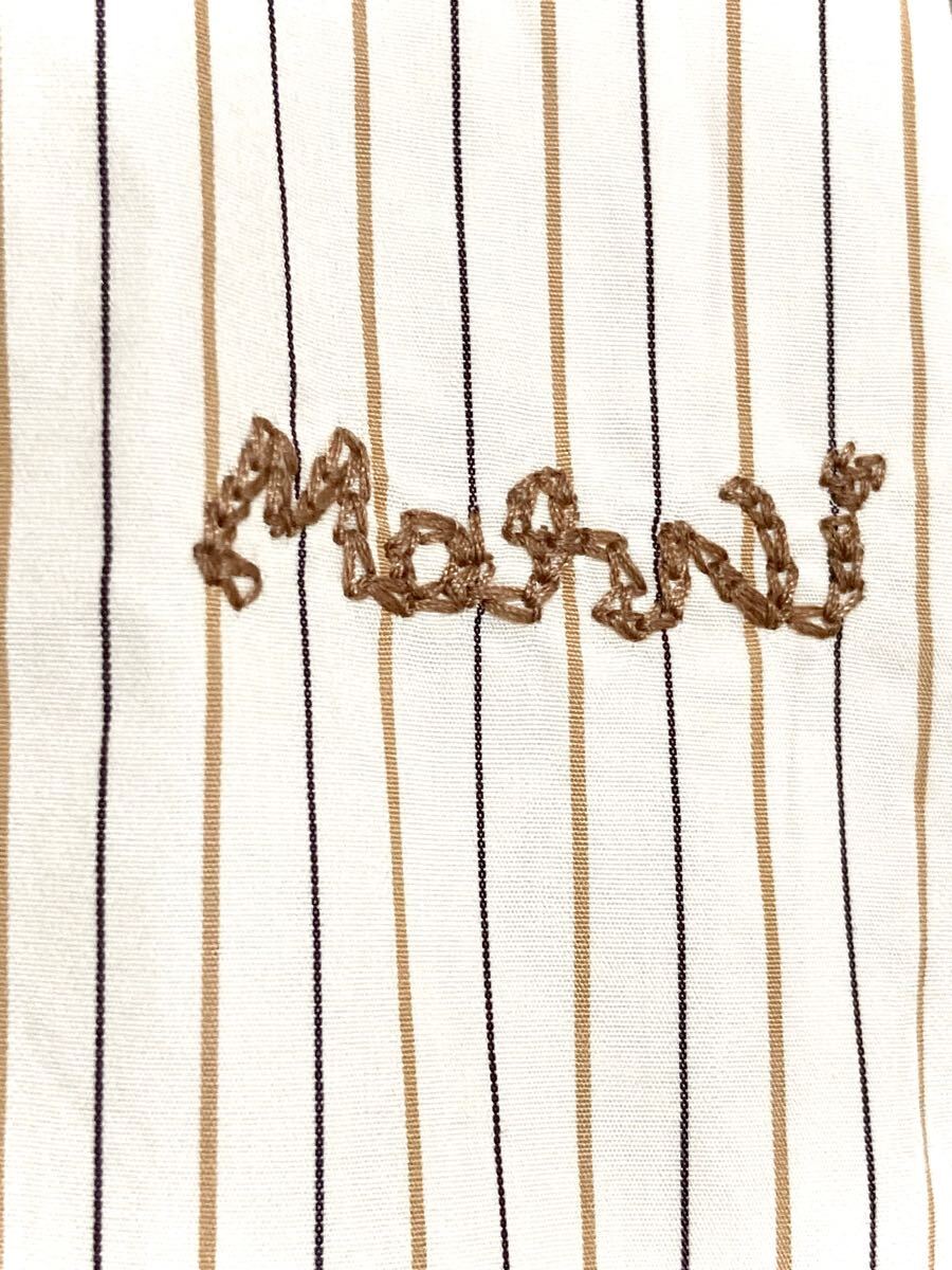シンプルなストライプ柄のシャツ生地のプルオーバー シャツです。
