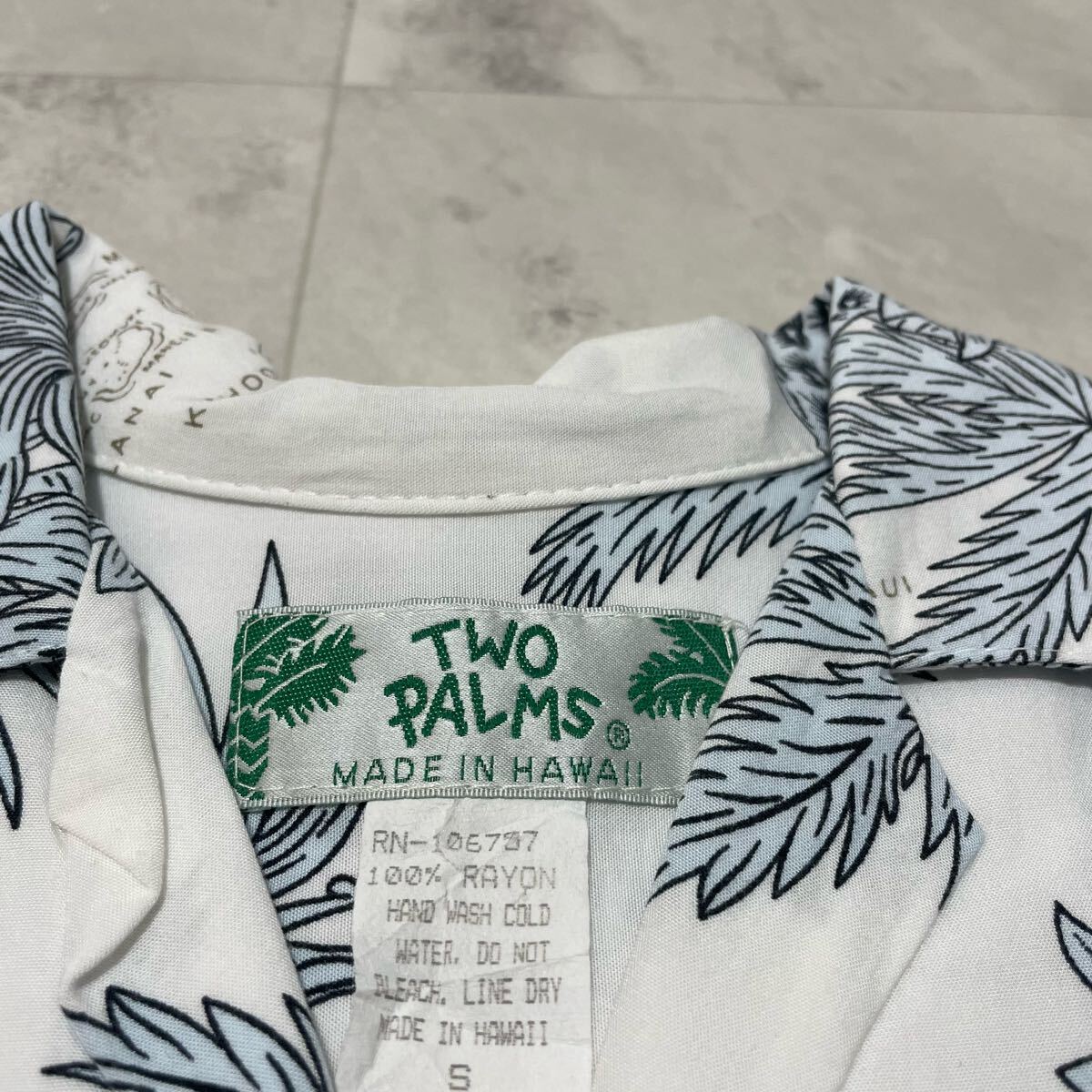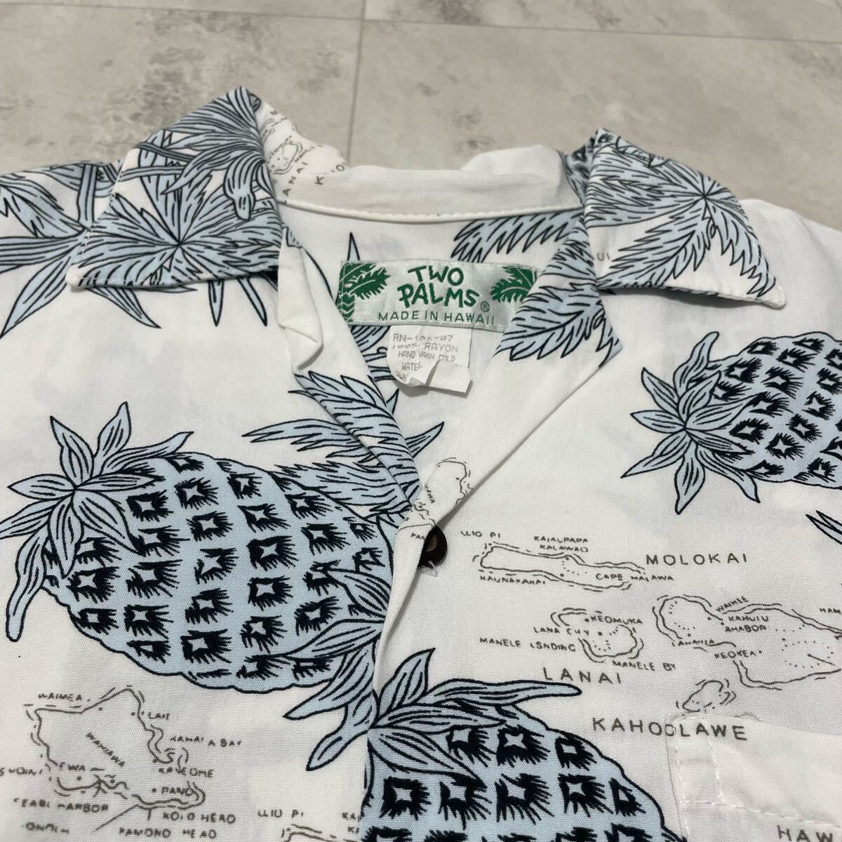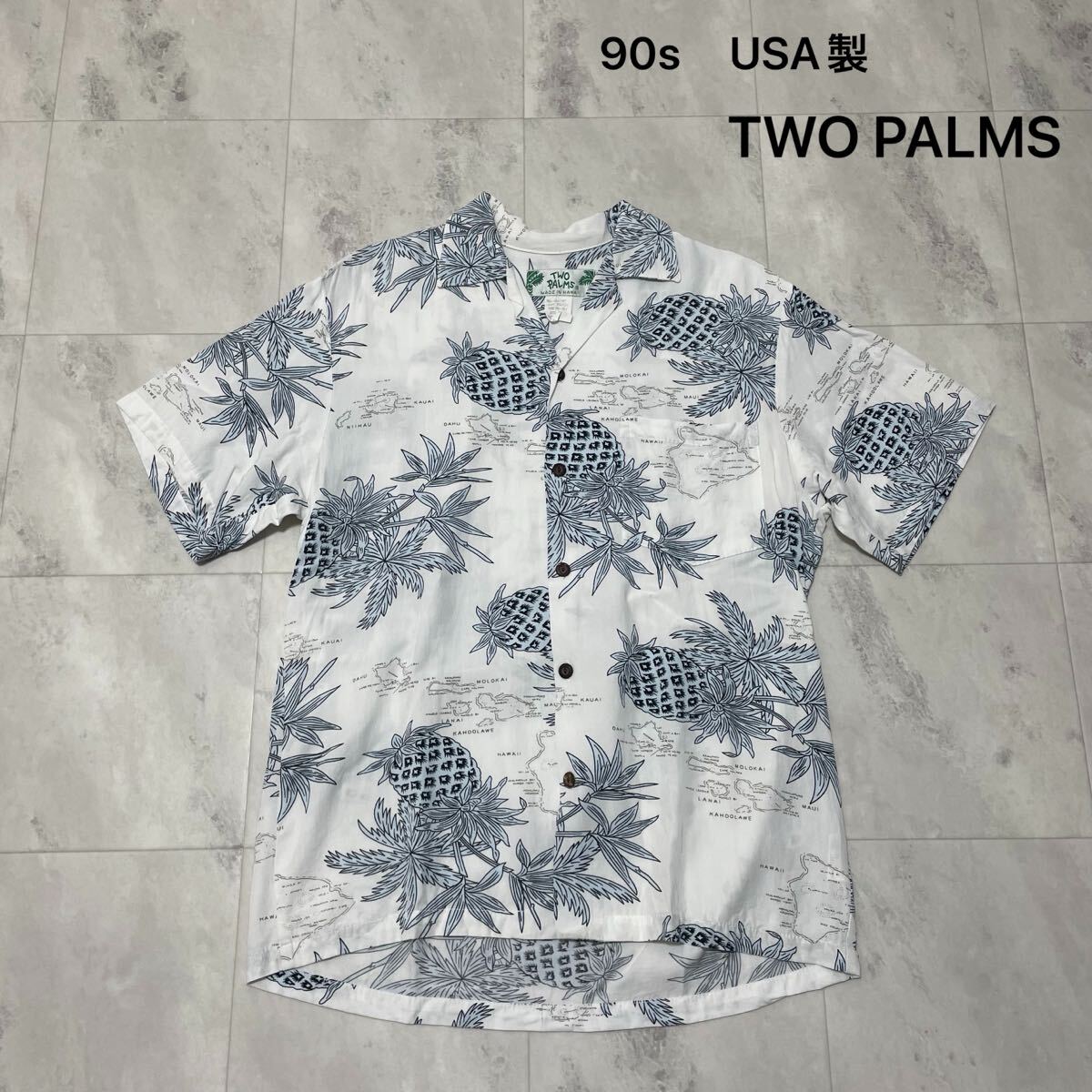 90s USA製 TWO PALMS トゥーパームス アロハシャツ レーヨン 開襟 パイナップル ヴィンテージ ハワイ製 ホワイト サイズS 玉SS3376