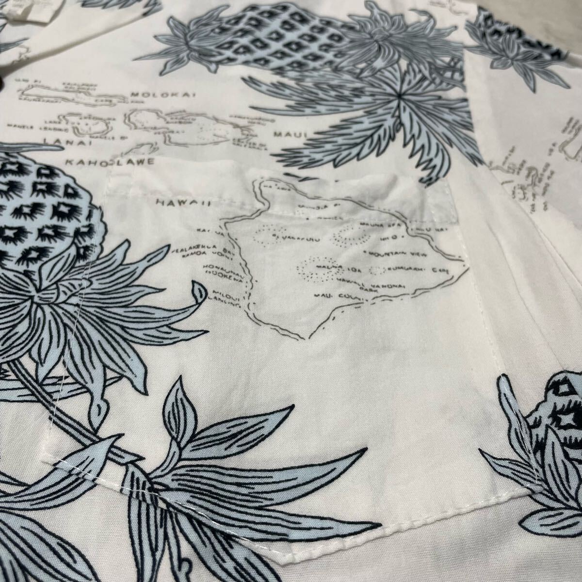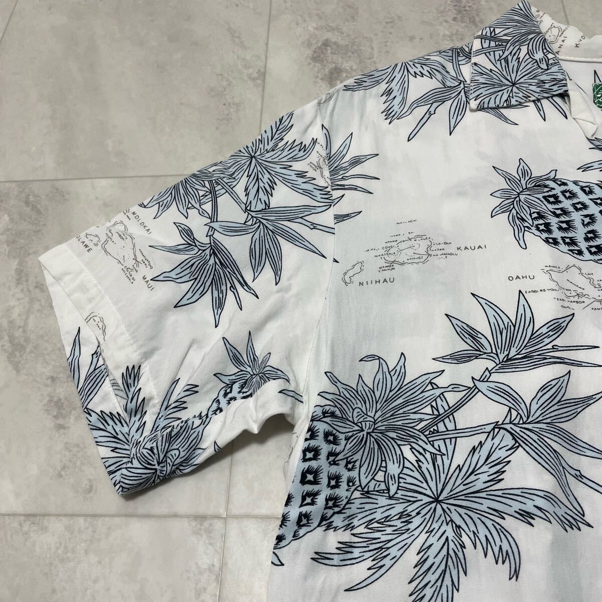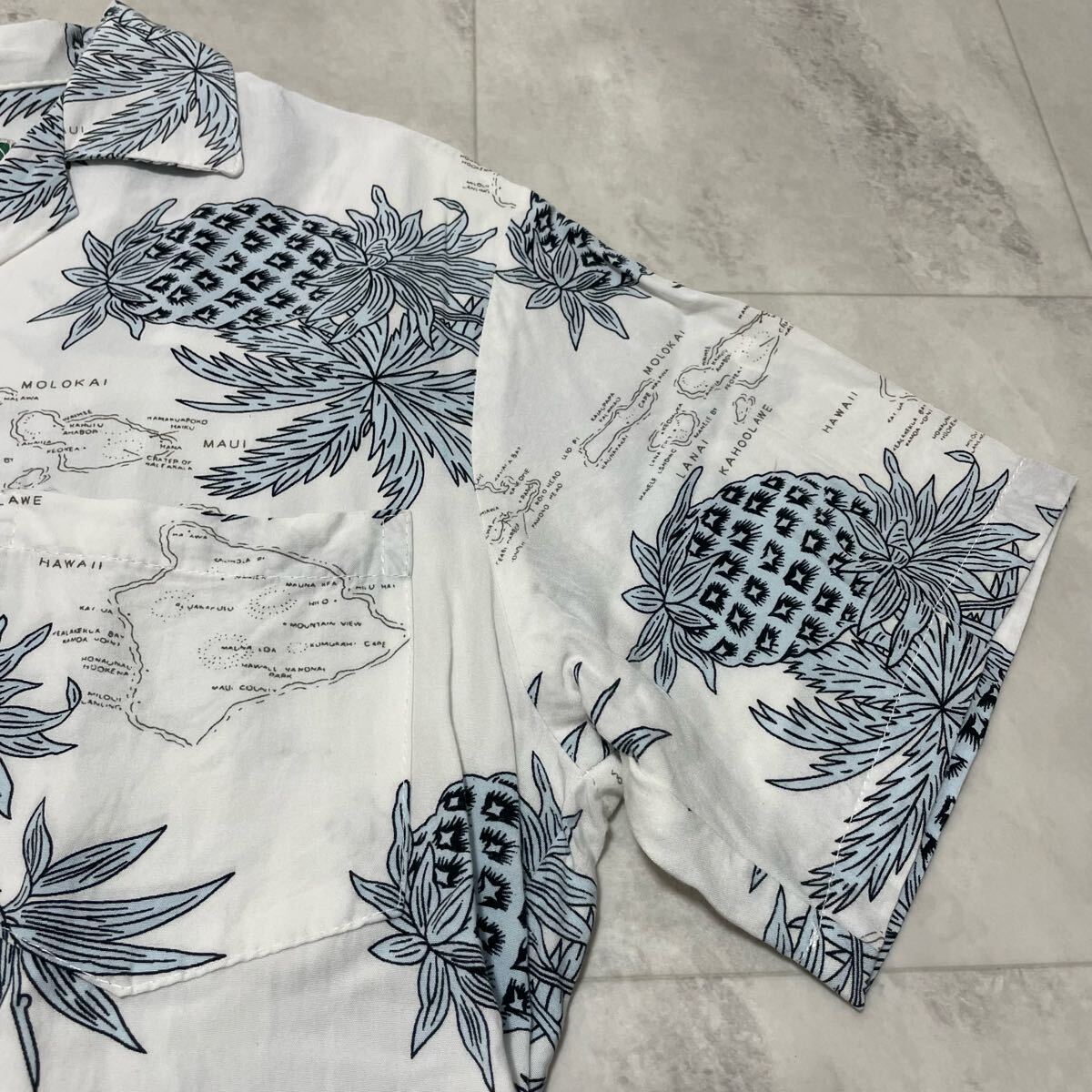 90s USA製 TWO PALMS トゥーパームス アロハシャツ レーヨン 開襟 パイナップル ヴィンテージ ハワイ製 ホワイト サイズS 玉SS3376