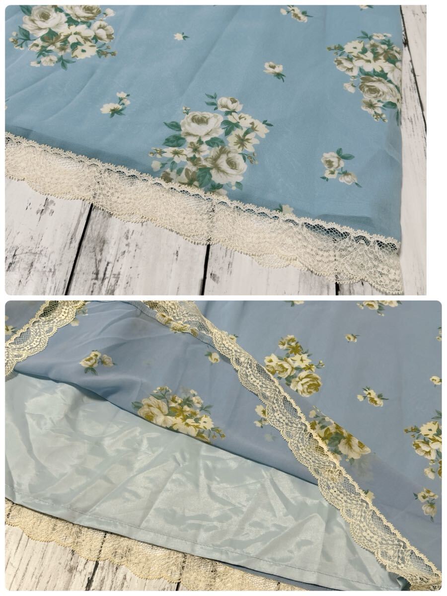 未使用 snidel スナイデル レディース 7分袖 チュニック ワンピース F レース F0B-08073 花柄 ブルー系 (E06)★