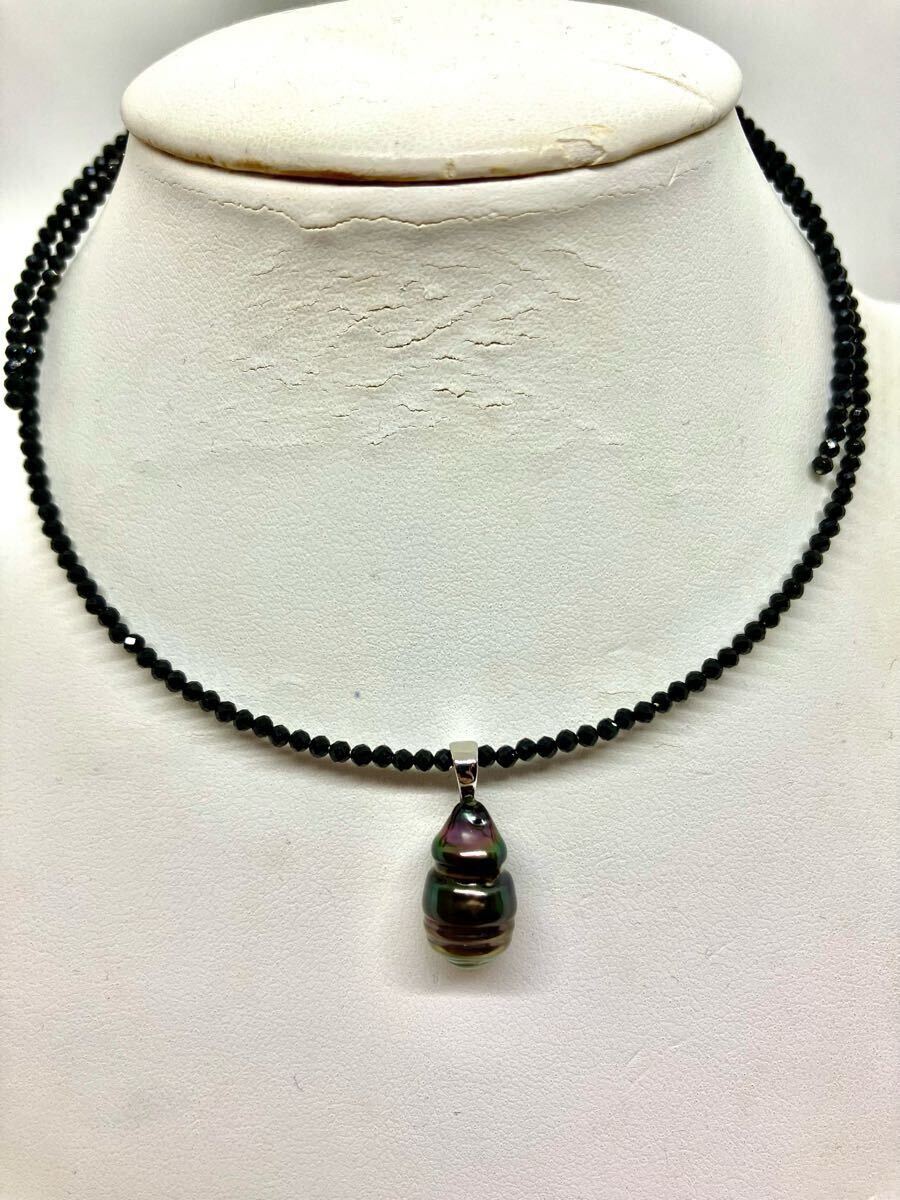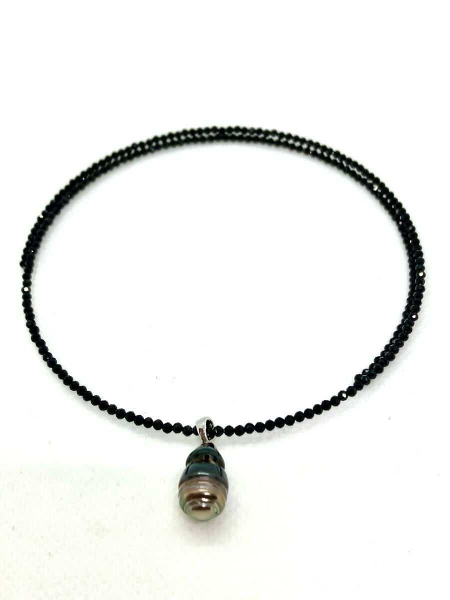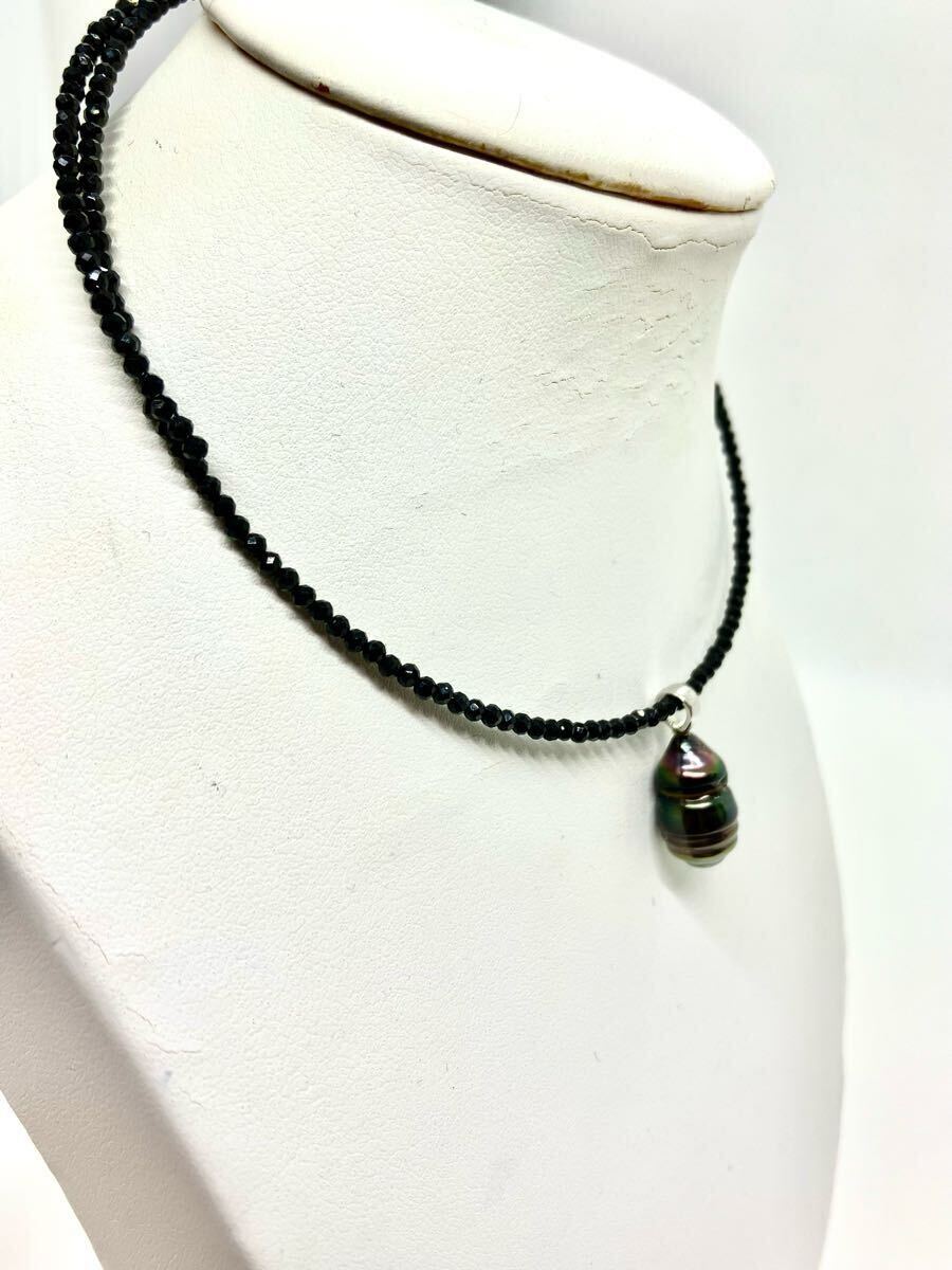 チェーンはオメガタイプのブラックスピネルの形状記憶を使用しております。スピネルにカットしておりますので輝きが綺麗です。