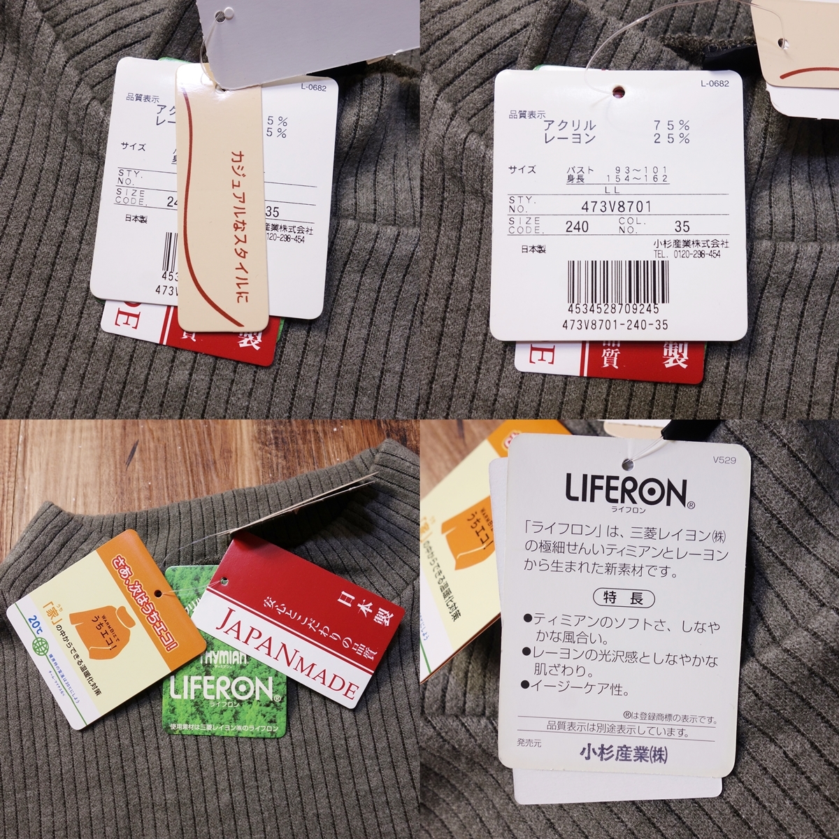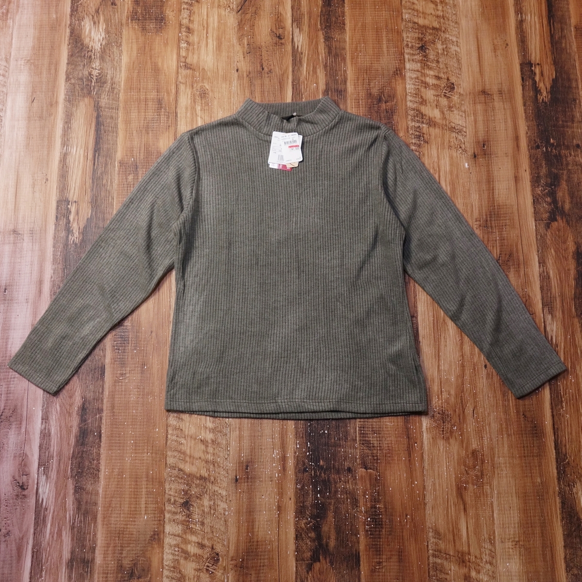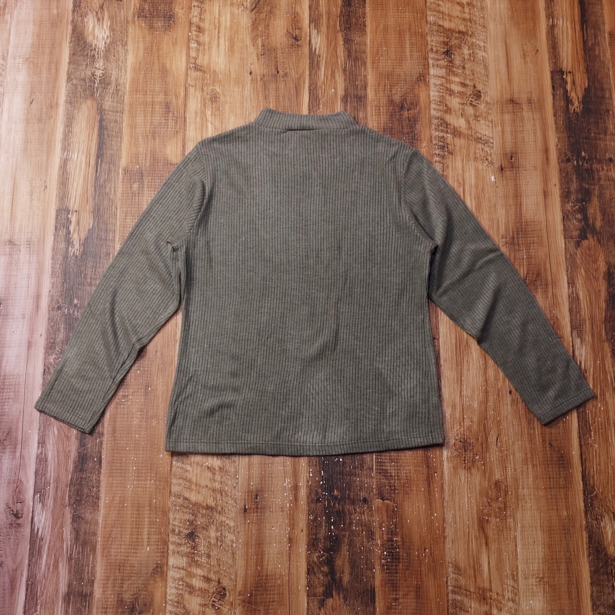 未使用 リブモックネックカットソー レディース トップス 長袖 秋冬 LL カーキグリーン PE2