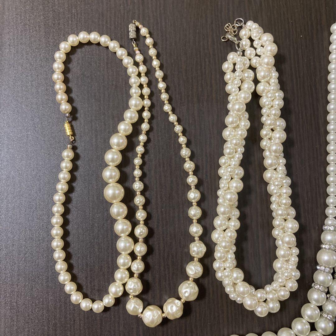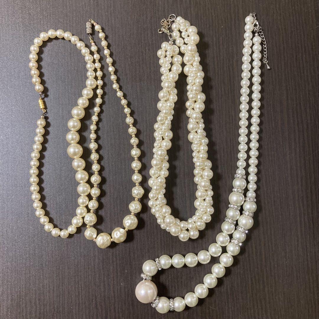 N52 まとめ ネックレス ×4 3連 フェイク パール ロング ヴィンテージ レトロ アンティーク