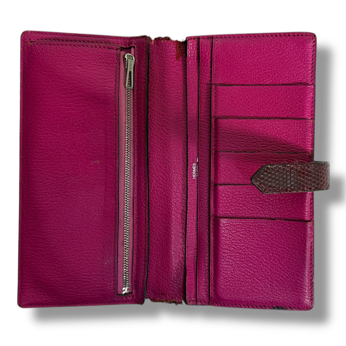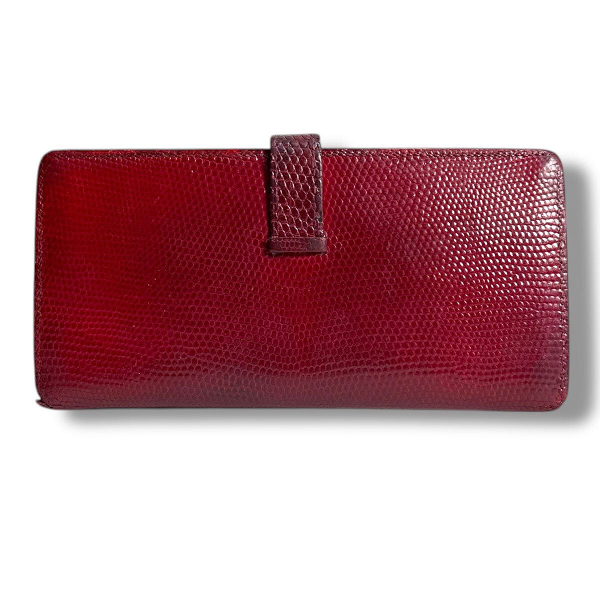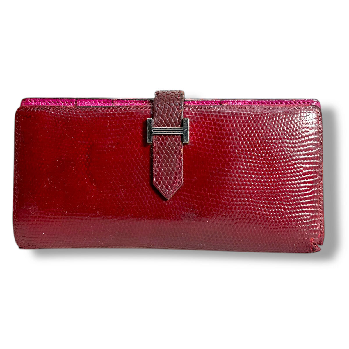 J5155 エルメス ベアン リザード シルバー金具 長財布 レッド×ピンク HERMES
