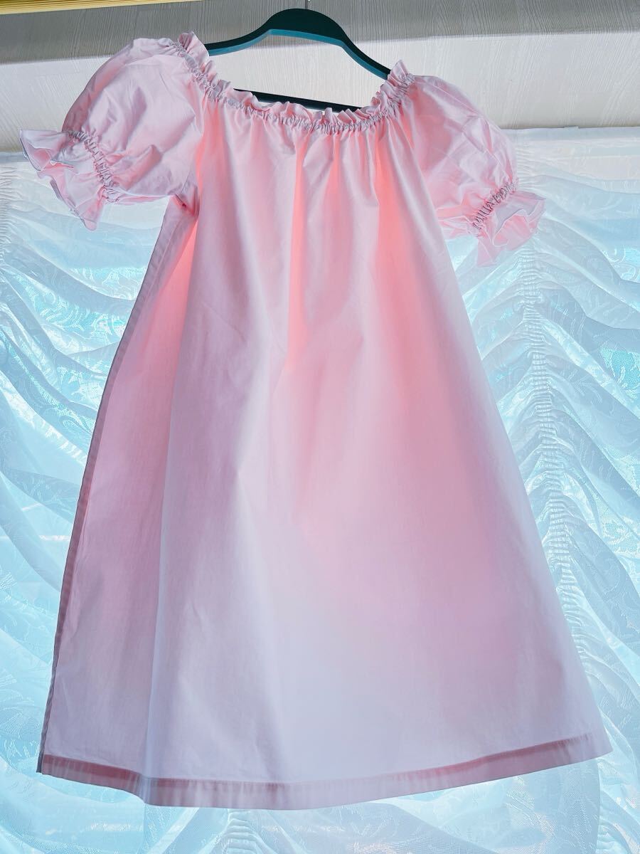 襟ぐりや袖口にはゴムが入っていてフリル、バルーンスリーブが可愛いです。